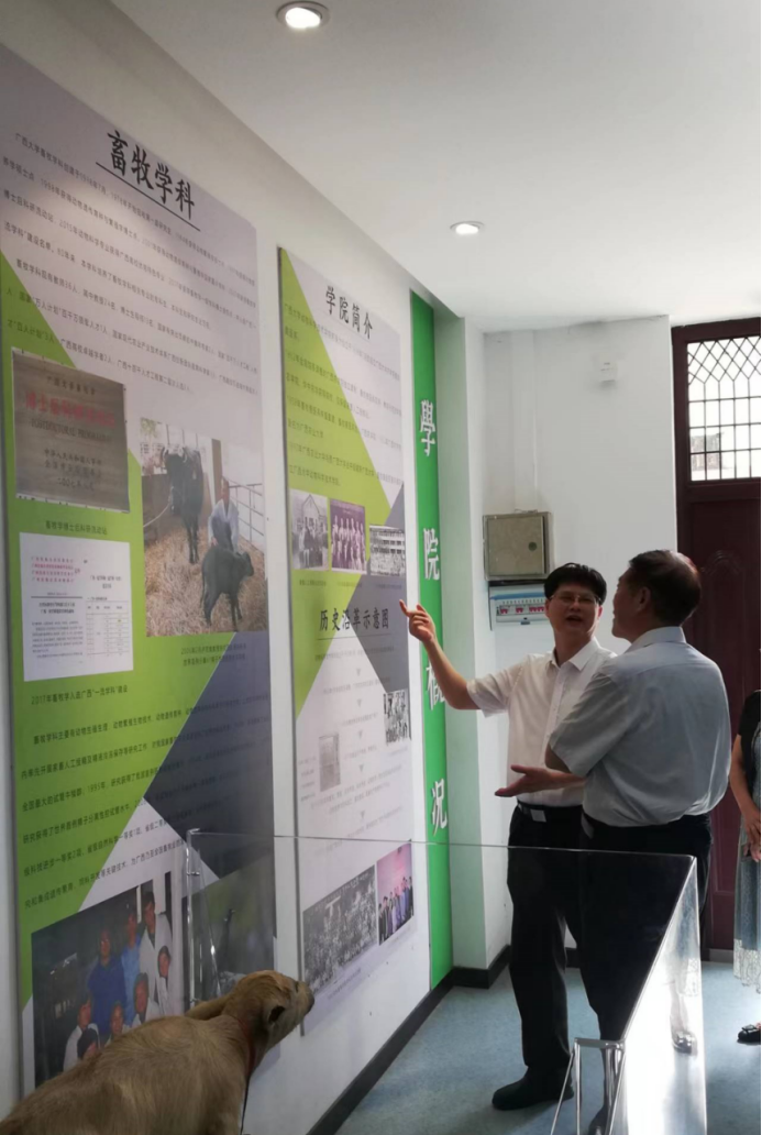 康相濤副校長一行首先參觀了廣西大學亞熱帶農(nóng)業(yè)生物資源保護與利用國家重點實驗室,再到動物科學技術(shù)學院參觀院史館和全國高校“雙帶頭人”教師黨支部書記工作室后,在學院302會議室進行座談交流。