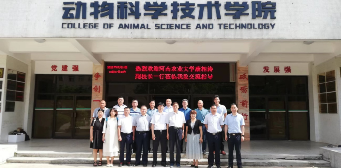 2022年7月19日上午,河南農(nóng)業(yè)大學副校長康相濤一行8人到我校交流,廣西大學黨委常委、副校長羅廷榮攜校科技處、動物科學技術(shù)學院相關(guān)領(lǐng)導和教師熱情接待。