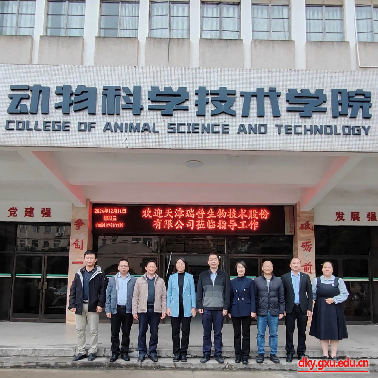 12月11日上午,天津瑞普生物技術(shù)股份有限公司副總裁兼高級(jí)工程師劉愛玲女士一行四人到我院造訪,動(dòng)物科學(xué)技術(shù)學(xué)院院長(zhǎng)陸陽清教授、副院長(zhǎng)何家康教授、副院長(zhǎng)韋祖樟教授及相關(guān)教師熱情接待并在學(xué)院302會(huì)議室進(jìn)行座談交流。