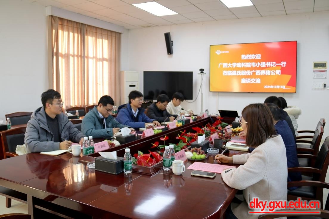 12月18日-19日,動物科學(xué)技術(shù)學(xué)院黨委書記韋小強(qiáng),黨委副書記沙建,副院長韋祖樟、蔣欽楊,專任教師梁興偉,教學(xué)秘書覃志彪,輔導(dǎo)員馬朝陽,以及學(xué)生代表等一行9人先后前往溫氏股份廣西養(yǎng)豬公司、賀州市第二高級中學(xué)、賀州市農(nóng)業(yè)農(nóng)村局開展訪企拓崗、科普進(jìn)校園活動、走訪看望校友。