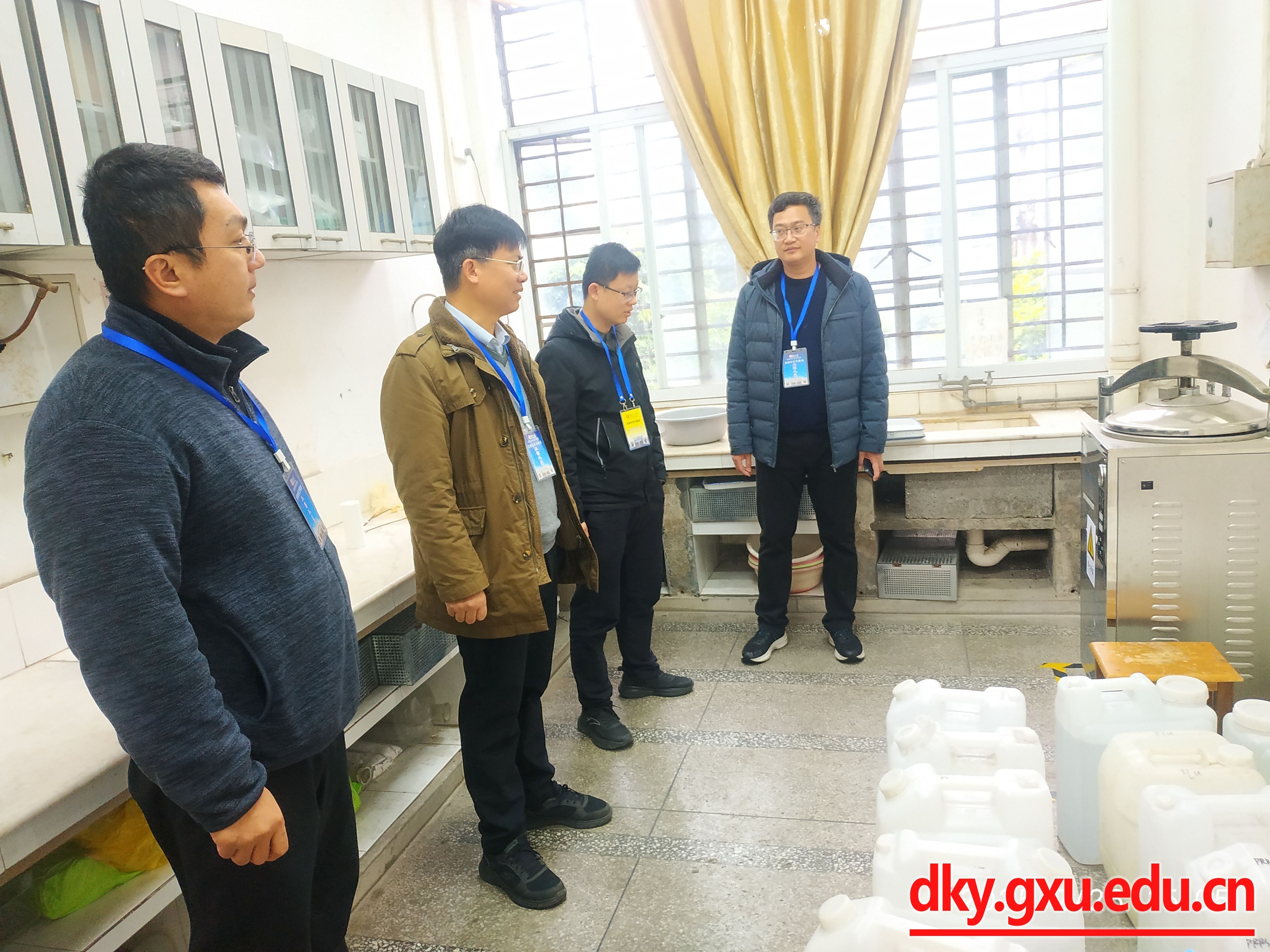 新學期伊始,為筑牢實驗室安全防線,保障教學科研工作平穩(wěn)有序開展,2月26日,廣西大學動物科學技術學院黨委書記韋小強、副院長蔣欽楊副帶隊檢查各教學和科研實驗室安全。