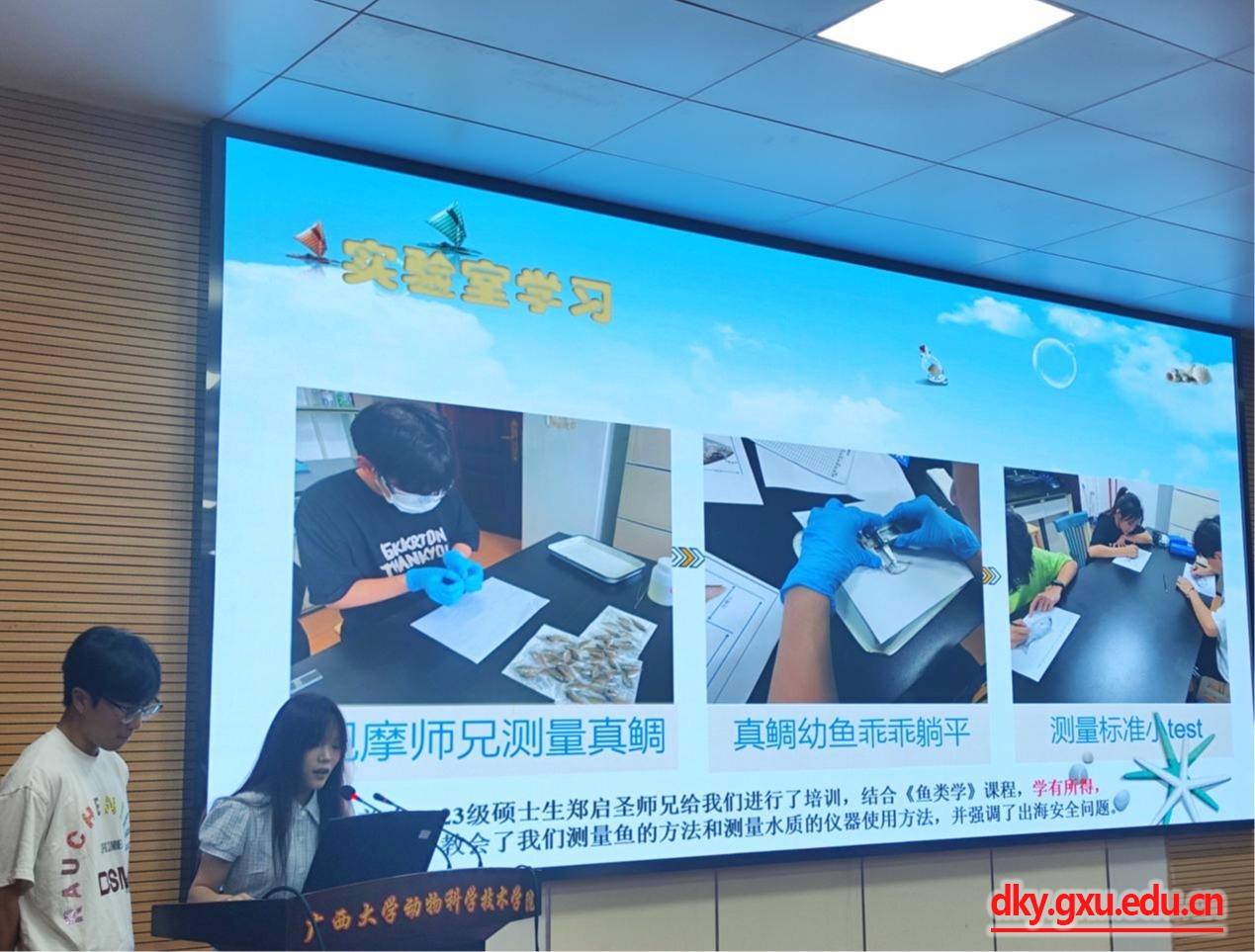 2022級(jí)動(dòng)物科學(xué)專業(yè)水產(chǎn)養(yǎng)殖方向何彥瑩、黃思愷同學(xué)分享他們參與實(shí)驗(yàn)室的科研學(xué)習(xí)和出海的趣味體驗(yàn)。