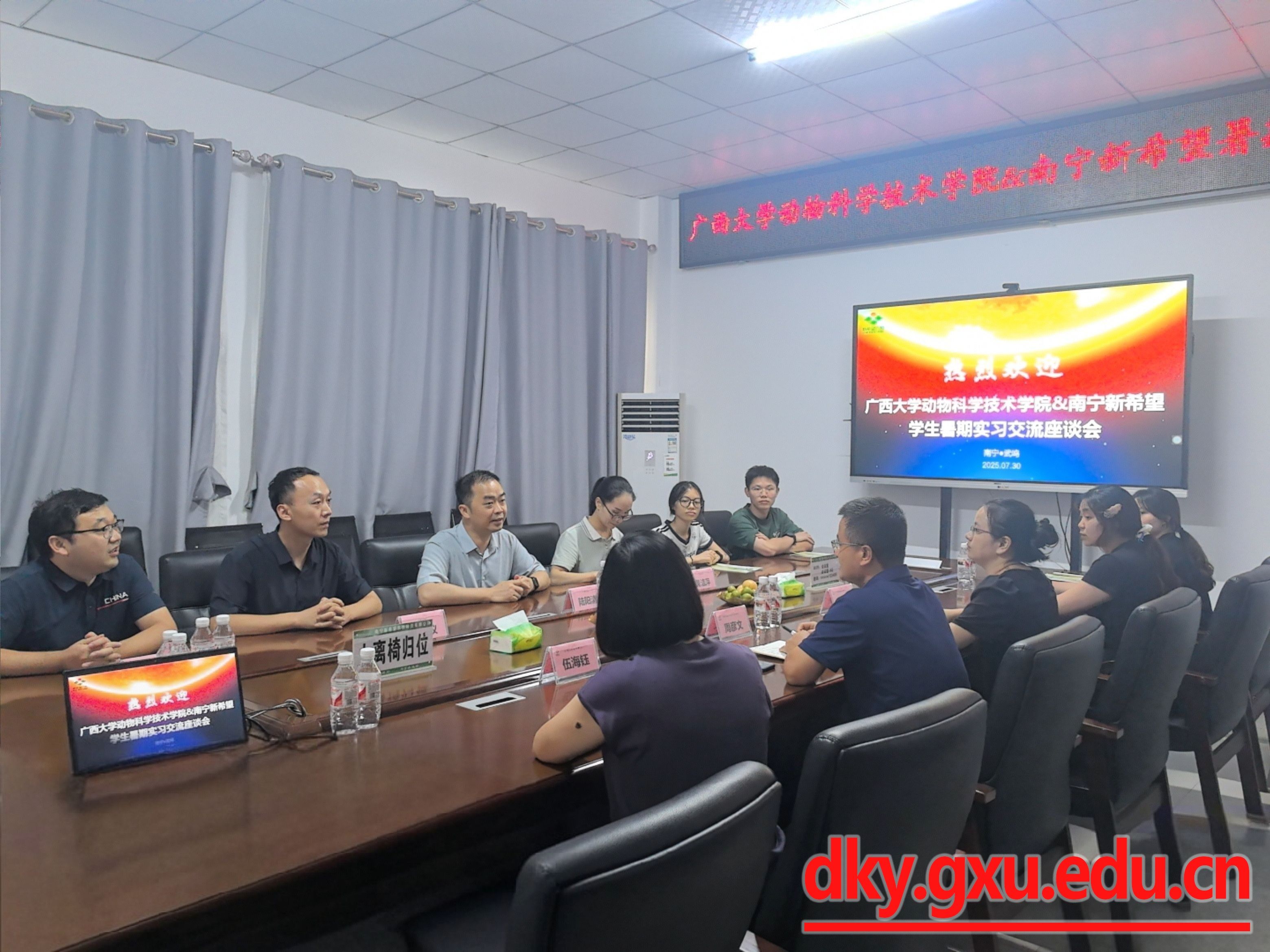 為進(jìn)一步掌握學(xué)生實(shí)習(xí)動(dòng)態(tài),筑牢安全防線,7月30日,廣西大學(xué)動(dòng)物科學(xué)技術(shù)學(xué)院院長(zhǎng)陸陽(yáng)清,動(dòng)物科學(xué)系副主任宋子儀、黃潔萍老師,實(shí)習(xí)指導(dǎo)老師羅棟等一行,先后赴阿榮寵物醫(yī)院和南寧新希望農(nóng)牧科技有限公司看望暑期生產(chǎn)實(shí)習(xí)學(xué)生,并開展訪企拓崗專項(xiàng)交流。