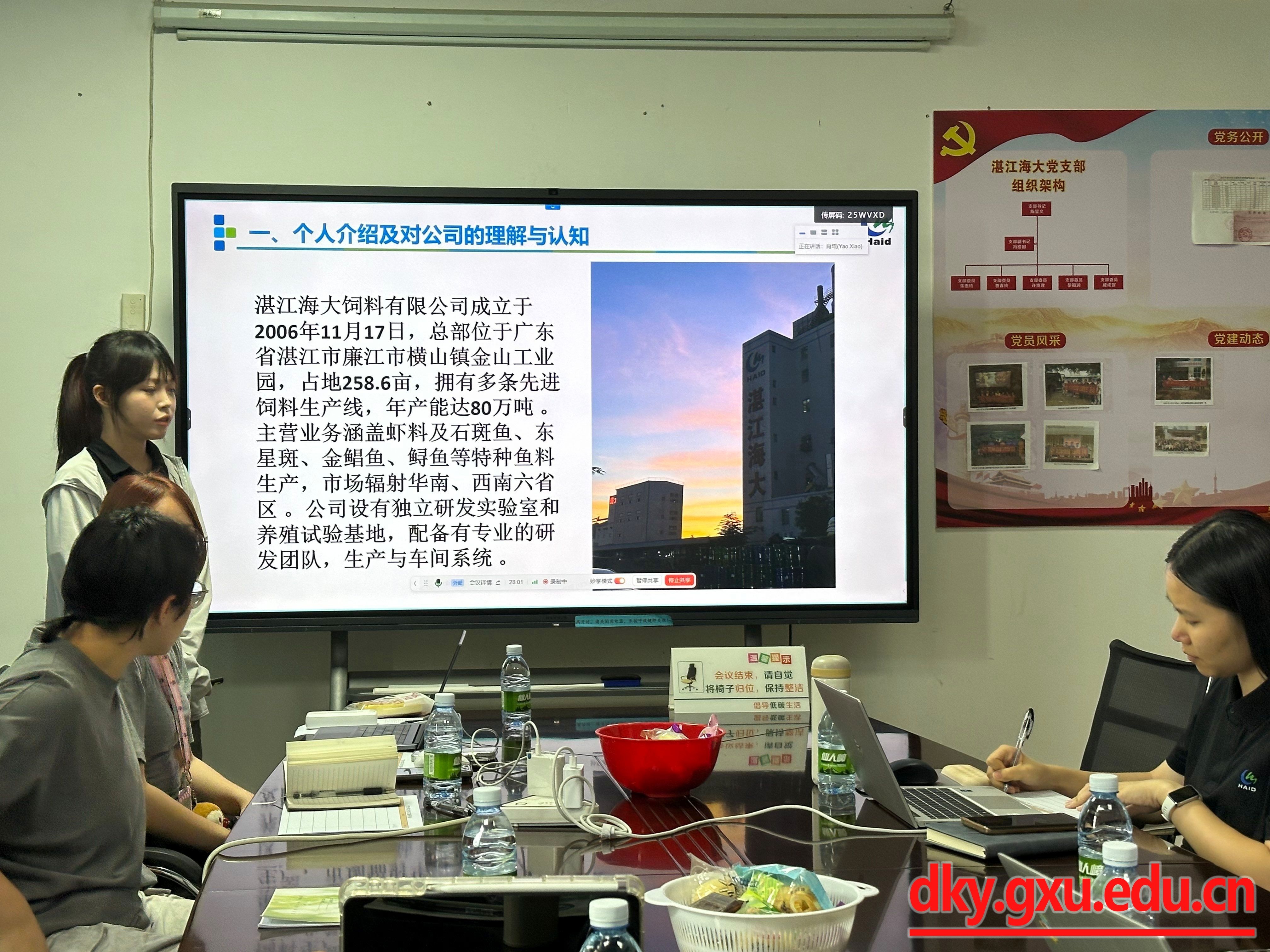 8月26日,實(shí)習(xí)總結(jié)會(huì)在湛江海大飼料有限公司總部順利召開。會(huì)議采用線上線下相結(jié)合的方式,湛江海大飼料有限公司相關(guān)負(fù)責(zé)人、指導(dǎo)老師以及全體實(shí)習(xí)學(xué)生參加了此次會(huì)議。會(huì)上,各基地實(shí)習(xí)學(xué)生依次匯報(bào)了實(shí)習(xí)內(nèi)容、收獲與感悟。總部學(xué)生詳細(xì)闡述了品控流程和小水體養(yǎng)殖循環(huán)系統(tǒng)的運(yùn)行與優(yōu)化;欽州基地學(xué)生分享了小棚蝦養(yǎng)殖的日常管理與病害防控經(jīng)驗(yàn);陽西基地學(xué)生則重點(diǎn)介紹了研發(fā)實(shí)驗(yàn)中的養(yǎng)殖實(shí)踐操作和數(shù)據(jù)分析。
