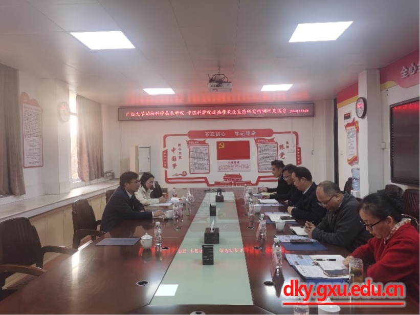 1月12日,中國科學院亞熱帶農(nóng)業(yè)生態(tài)研究所陳洪松所長一行到廣西大學動物科學技術(shù)學院調(diào)研交流。動物科學技術(shù)學院院長陸陽清,副院長韋祖樟、蔣欽楊,動物醫(yī)學系主任陳櫻,動物科學系主任李輝,以及部分教師代表參加座談會。座談會由陸陽清主持。