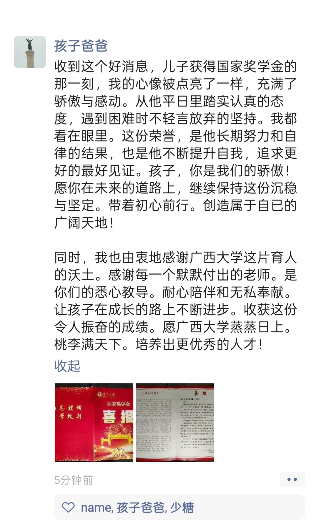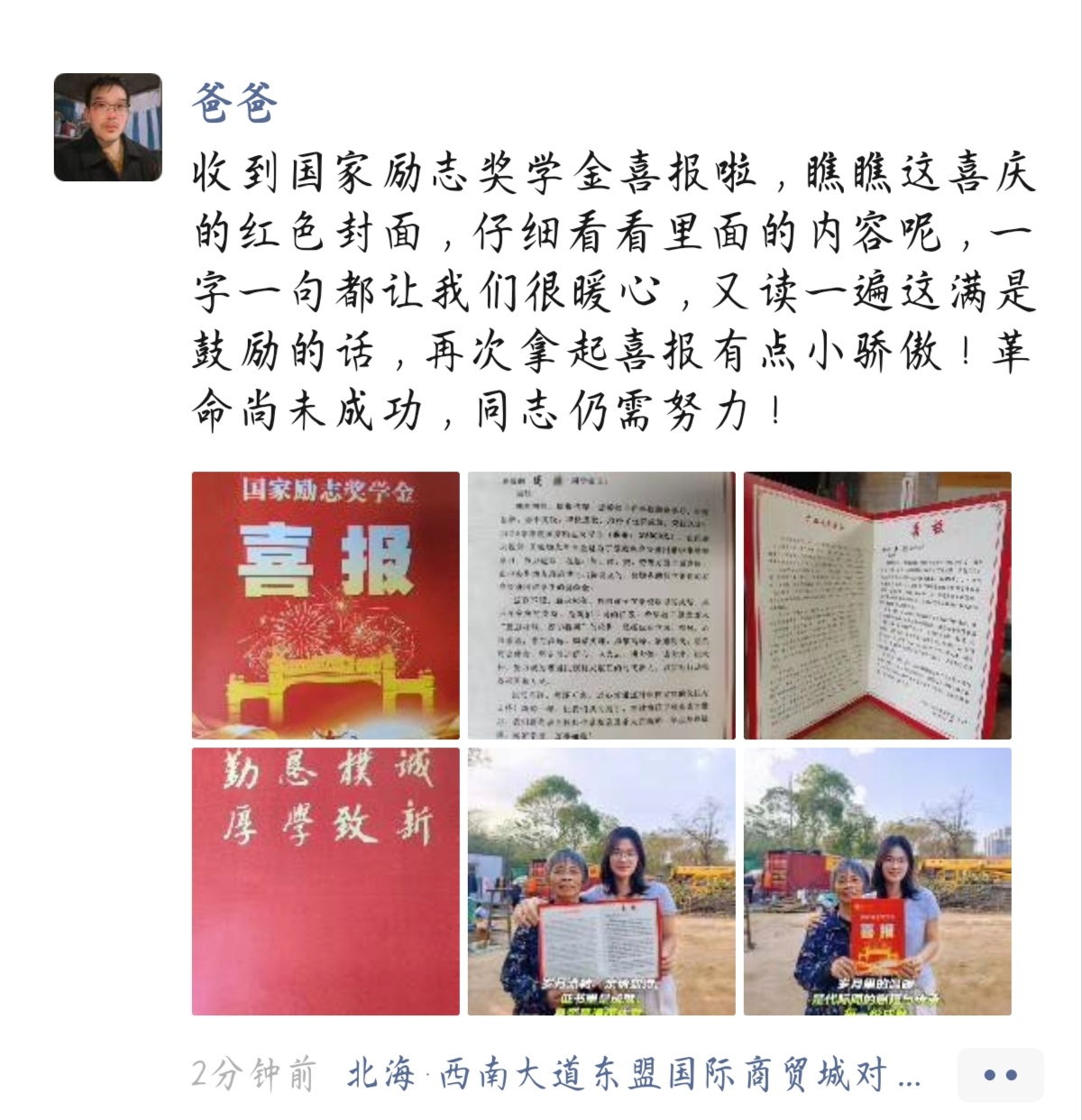博士研究生國家獎學金獲獎學生徐百昌家長