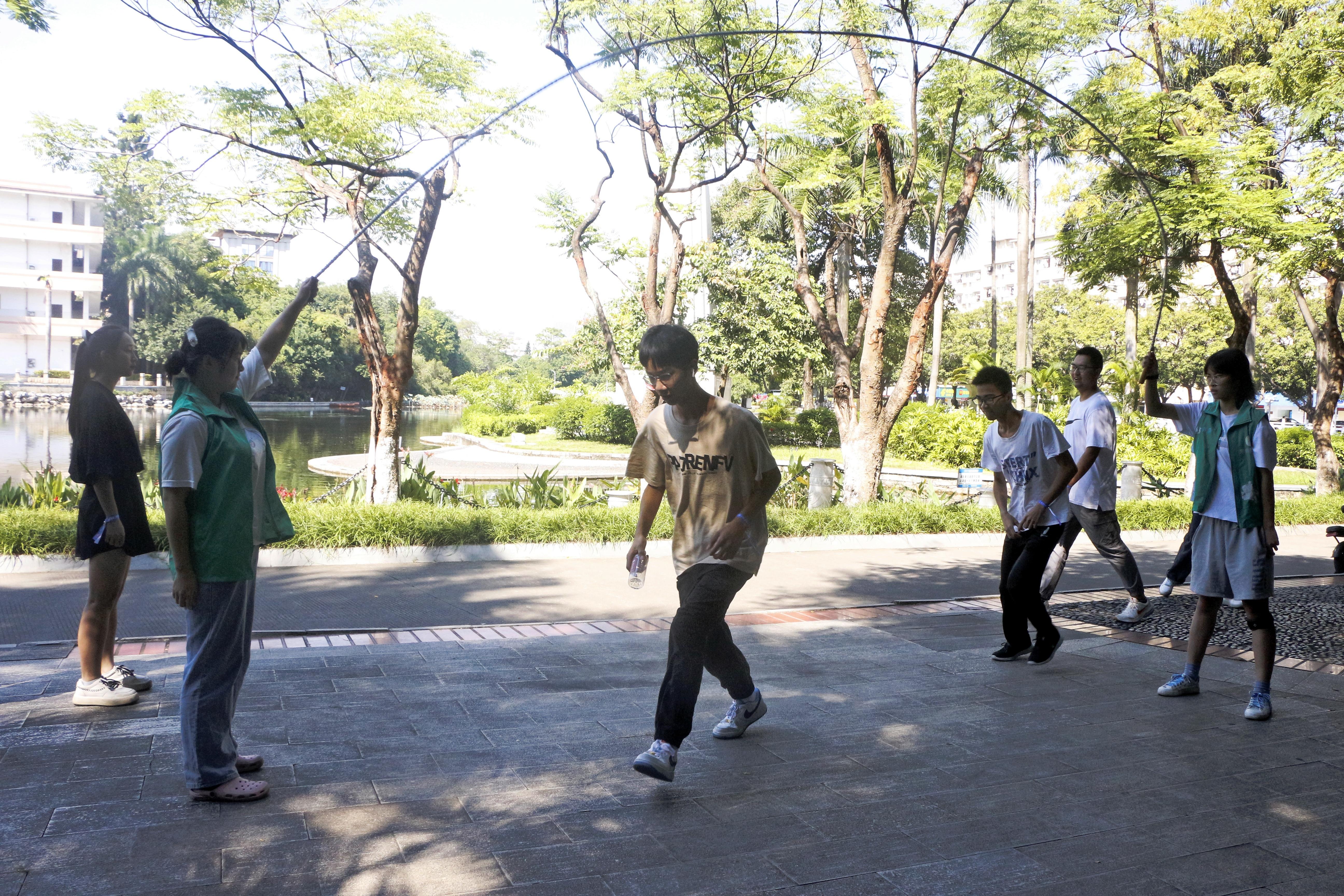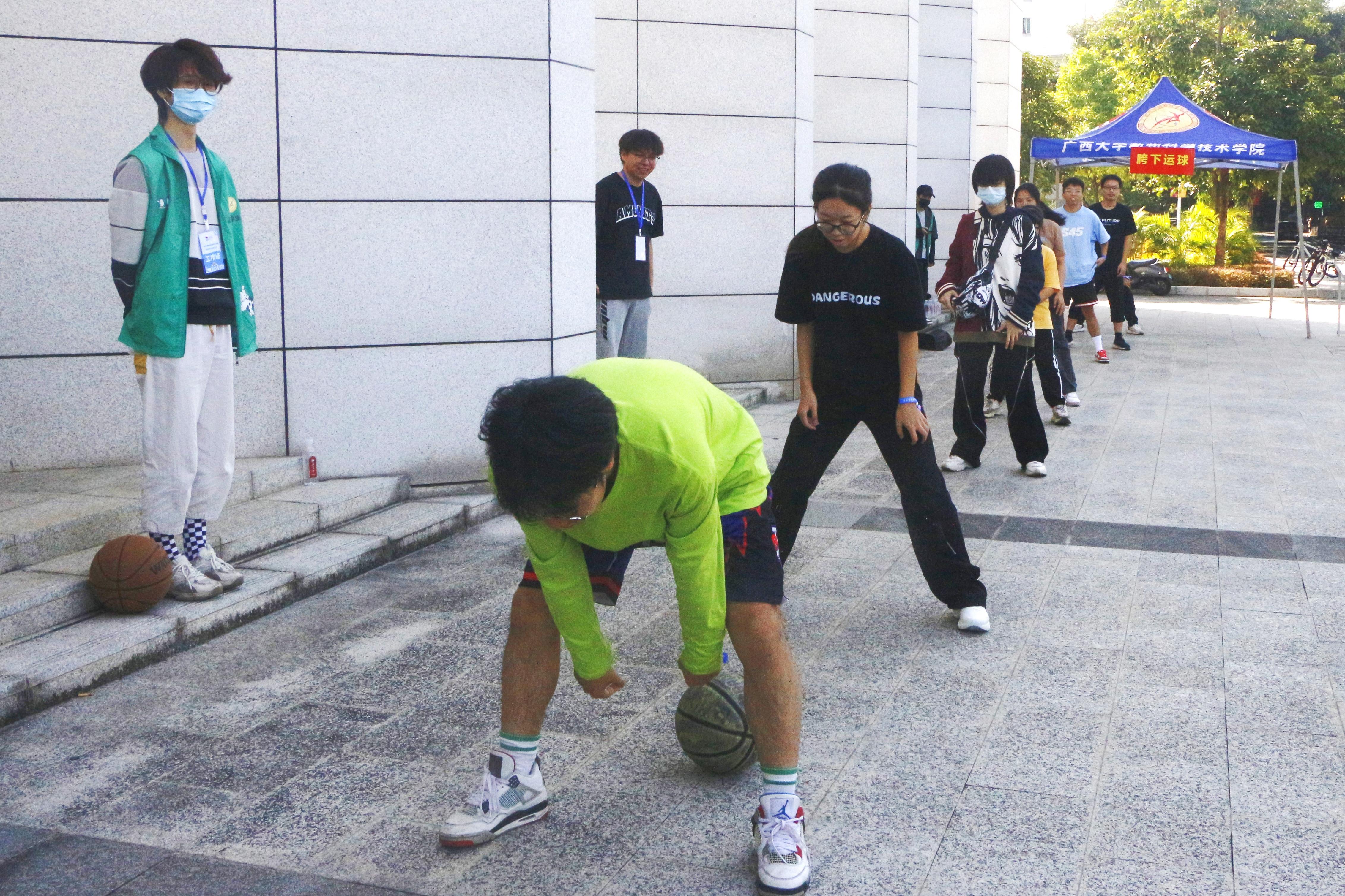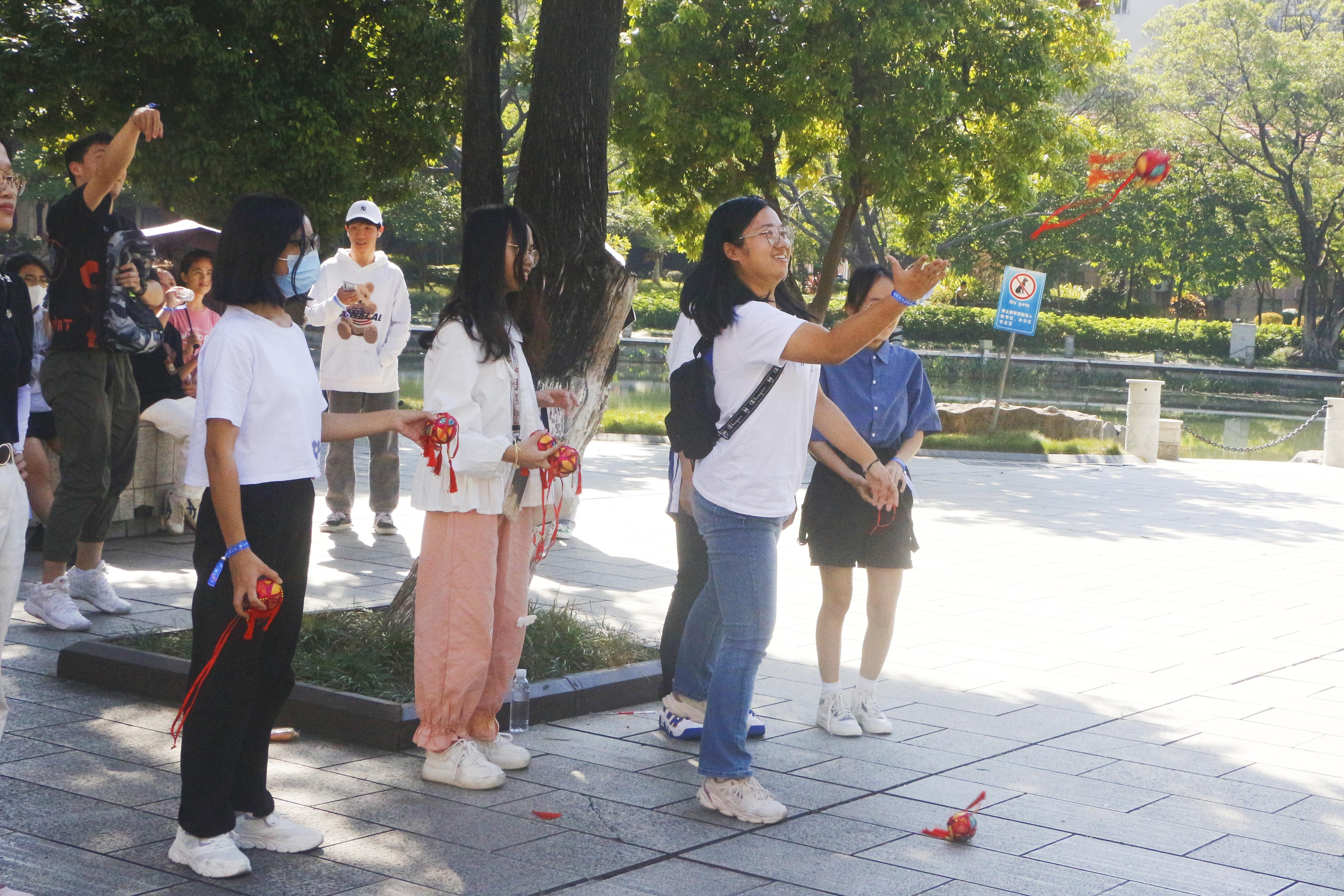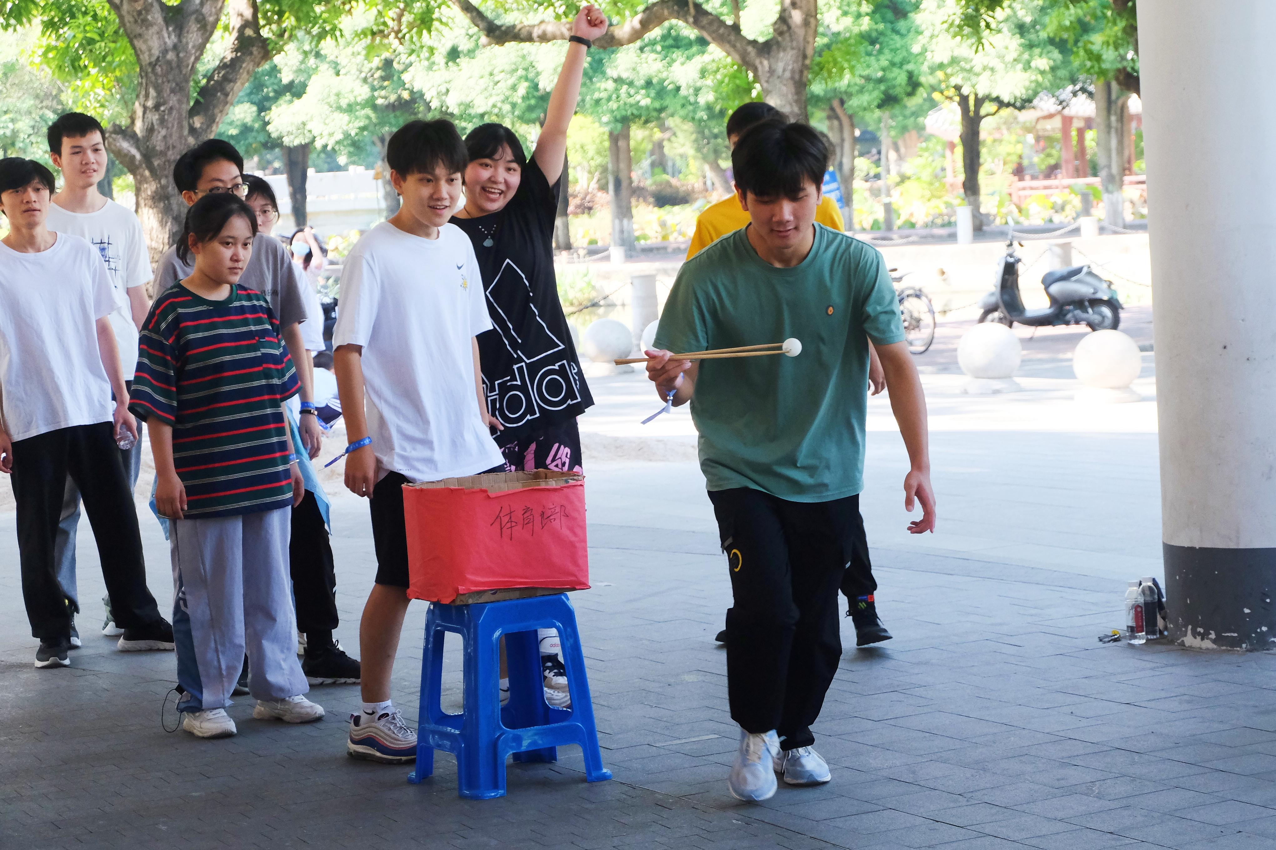 本次活動(dòng)以游戲?yàn)檩d體,以運(yùn)動(dòng)為依托,分別在育才廣場、大禮堂、匯學(xué)堂、圖書館、大學(xué)生活動(dòng)中心、學(xué)生軍紀(jì)念碑等校園標(biāo)志性區(qū)域設(shè)置了6個(gè)游戲站點(diǎn)。動(dòng)物科學(xué)技術(shù)學(xué)院2022級(jí)本科生全員參與,隨機(jī)分為20組,通過不同路徑前往游戲站點(diǎn),進(jìn)行了“你的名字”、背簍接繡球、胯下傳球、兩人三足、夾乒乓球、接力長繩等寓教于樂的團(tuán)隊(duì)訓(xùn)練項(xiàng)目,使得大家既在輕松有趣的氛圍里,以游戲的形式增進(jìn)了彼此間了解和信任,又在充滿挑戰(zhàn)的環(huán)境中,以團(tuán)隊(duì)的方式感受到集體的力量和智慧。