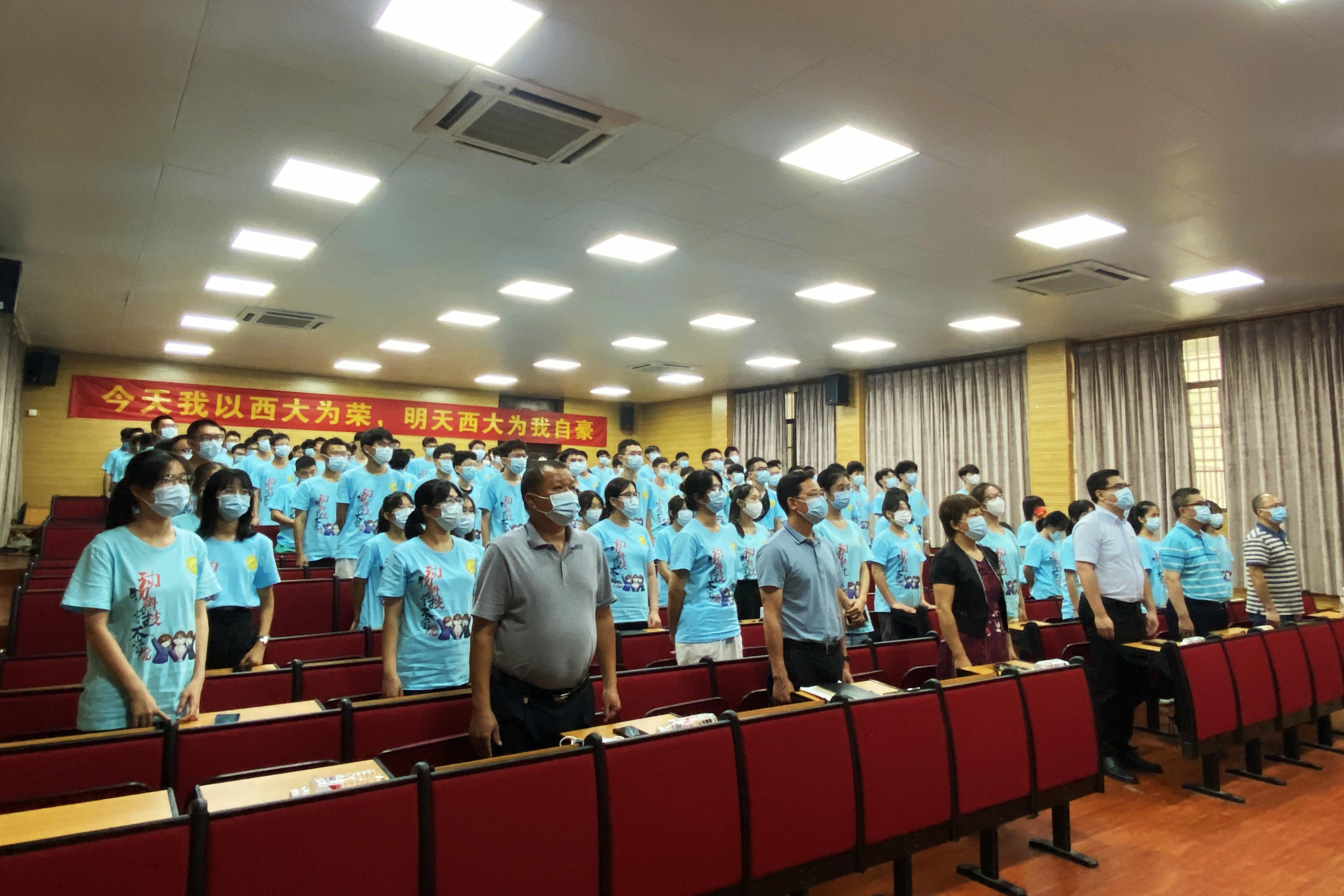 韓林海校長作題為《用奮斗擦亮青春底色 以實干擔(dān)當(dāng)時代重任》的講話,向加入西大大家庭的新生表示歡迎和祝賀,向辛勤培養(yǎng)新生的親人及老師們致以敬意和感謝。他介紹了廣西大學(xué)90多年的奮進(jìn)歷程,重溫了“保衛(wèi)中華,發(fā)達(dá)廣西”的辦學(xué)宗旨和“勤懇樸誠”校訓(xùn)的深刻內(nèi)涵和深遠(yuǎn)意義。韓林海校長指出,同學(xué)們的青春之路和祖國“兩個一百年”奮斗之路高度契合,正所謂“生逢其時、重任在肩”,希望同學(xué)們肩負(fù)起時代賦予的重任,接好西大接力棒,珍惜大學(xué)時光,讓青春年華充實而美好。要做一名勇攀高峰、追求進(jìn)步的奮斗者,用青年毛澤東的家國情懷為激勵,發(fā)揚首任校長馬君武先生提出的“三拼精神”,學(xué)習(xí)一代代西大人艱苦奮斗、砥礪奮進(jìn)的拼搏精神,早立大志、勤下苦功、勇攀高峰,在西大校園里留下追求進(jìn)步、不懈奮斗的最美模樣;要做一名心存敬畏、嚴(yán)謹(jǐn)求是的實干者,主動積極、持久以恒的學(xué)習(xí),養(yǎng)成踏實做人、扎實做事的品格,實現(xiàn)自我提升,收獲更多成長;要做一名心存家國、扎根八桂的初心者,學(xué)習(xí)學(xué)校支教團(tuán)以“志愿+接力”方式致力于支教、扶貧、疫情防控等工作和選調(diào)生扎根廣西基層、服務(wù)八桂大地的擔(dān)當(dāng)精神,心懷“國之大者”,篤定“國之所需,吾之所向”的信念,把知識扎根在理想信念上,把初心根植于學(xué)習(xí)中,將個人奮斗目標(biāo)融入黨和國家事業(yè)“大藍(lán)圖”,在時代的洪流中堅守初心,書寫屬于同學(xué)們的新榮光。