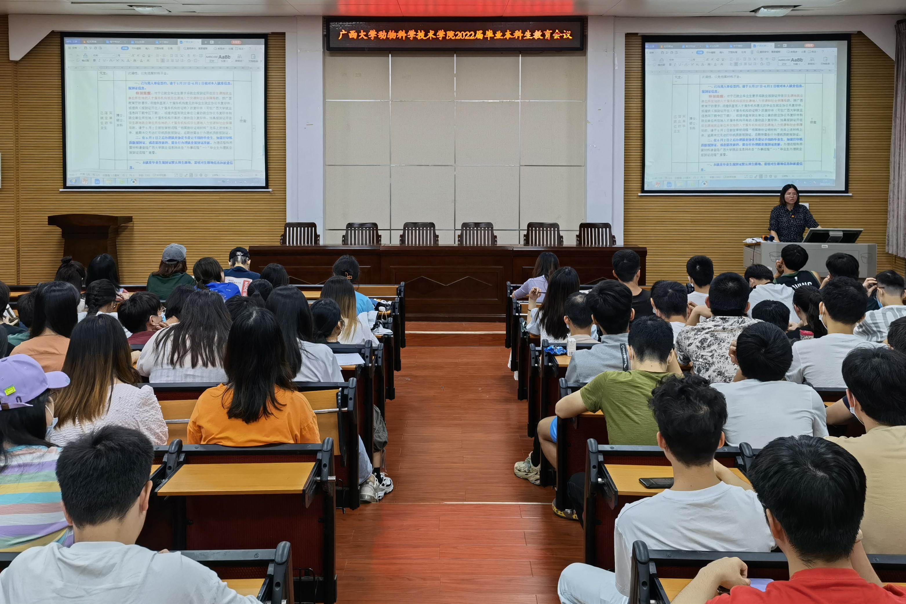 5月20日上午,廣西大學(xué)動(dòng)物科學(xué)技術(shù)學(xué)院在318報(bào)告廳召開(kāi)2022屆畢業(yè)本科生教育會(huì)議。動(dòng)物科學(xué)技術(shù)學(xué)院團(tuán)委書(shū)記李麗娜,團(tuán)委副書(shū)記劉誠(chéng),輔導(dǎo)員彭可可,以及全體2022屆畢業(yè)本科生參加此次會(huì)議。