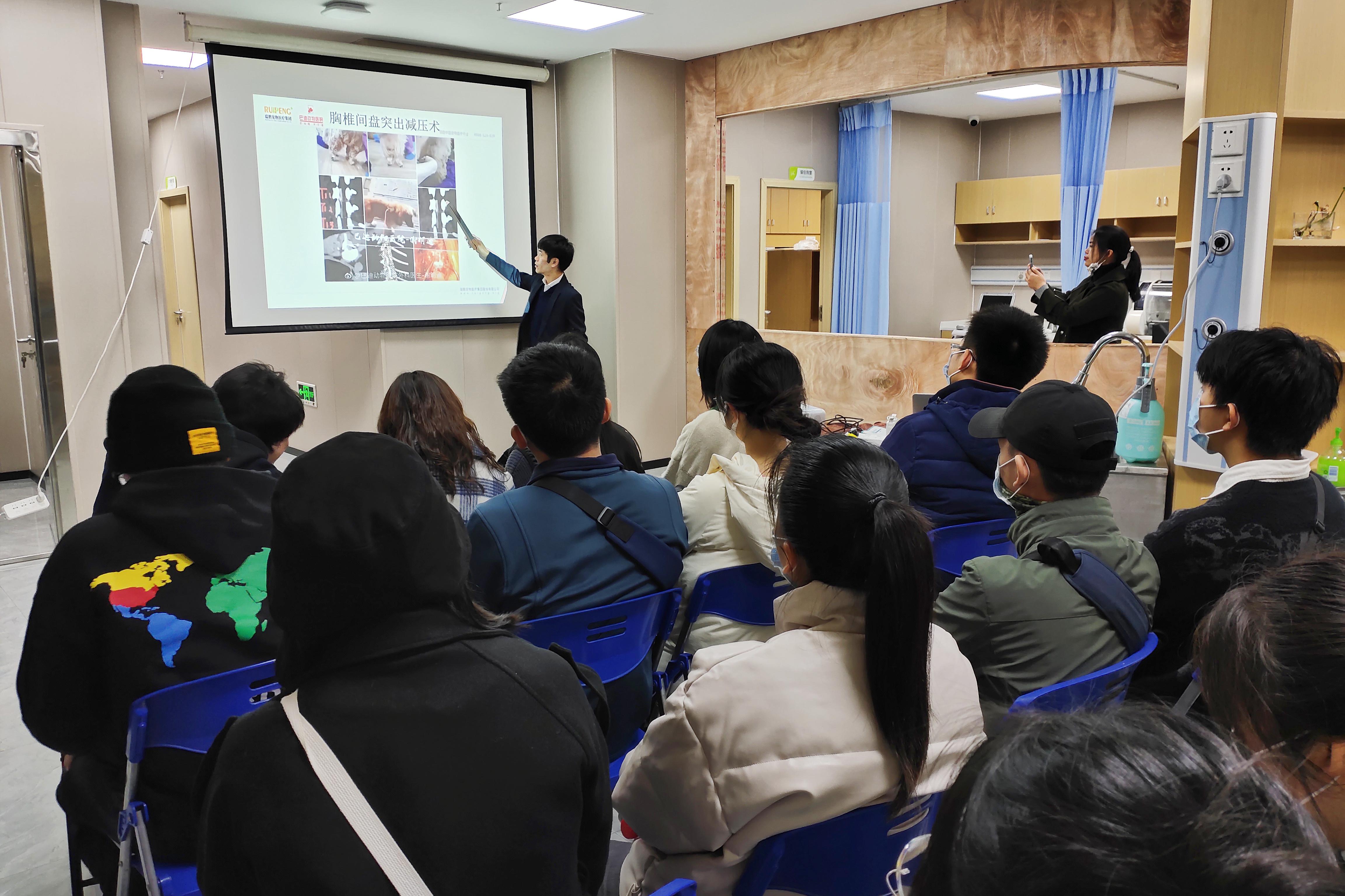 謝明迪醫(yī)師通過分享輸尿管損傷、下頜關(guān)節(jié)粘連、胸椎間盤突出、先天性橫膈心包疝、壞死性角膜炎、粉碎性骨折等特殊病例的治療過程,給師生們細(xì)致介紹了外科、骨科、內(nèi)科、眼科等寵物診療要點(diǎn)和技術(shù)操作關(guān)鍵。