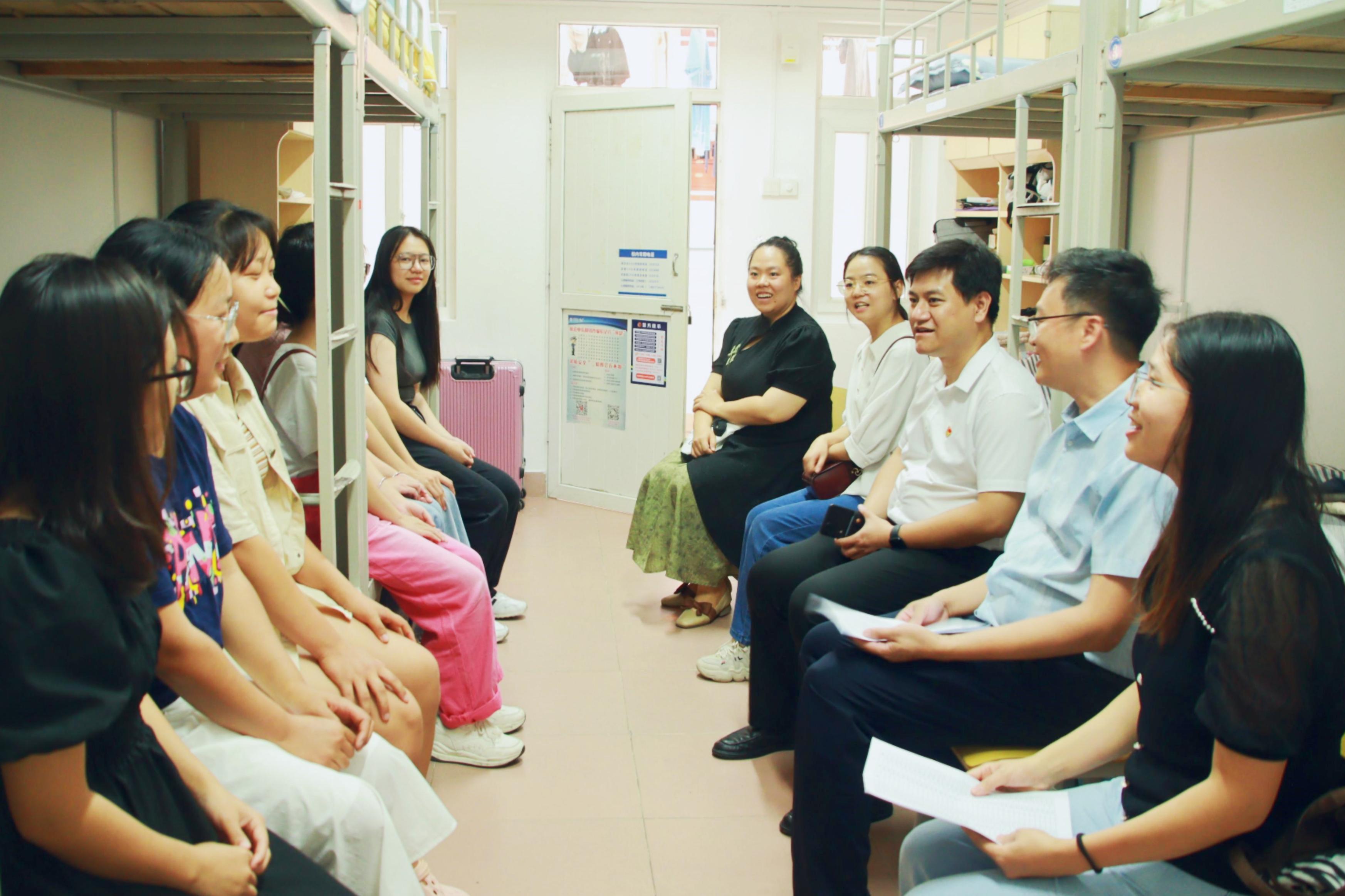 9月9、10日下午,廣西大學(xué)動(dòng)物科學(xué)技術(shù)學(xué)院黨委書記韋小強(qiáng),院長陸陽清,黨委副書記沙建,副院長寧鵬飛、何家康、韋祖樟,院長助理、動(dòng)物科學(xué)系主任蔣欽楊,動(dòng)物醫(yī)學(xué)系主任陳櫻,團(tuán)委書記李麗娜,團(tuán)委副書記劉誠,輔導(dǎo)員彭可可、鄒佳琪、馬朝陽,班主任莊站偉、張瑞門、冉明霞、鐘秋、韋懿仙、陳富美、牟婧、雷磊,以及團(tuán)委、學(xué)生會(huì)、研究生會(huì)學(xué)生骨干,來到東1A棟、東16棟、東22棟、西21棟學(xué)生宿舍,分別走訪慰問動(dòng)物科學(xué)技術(shù)學(xué)院2023級(jí)本科生、研究生。