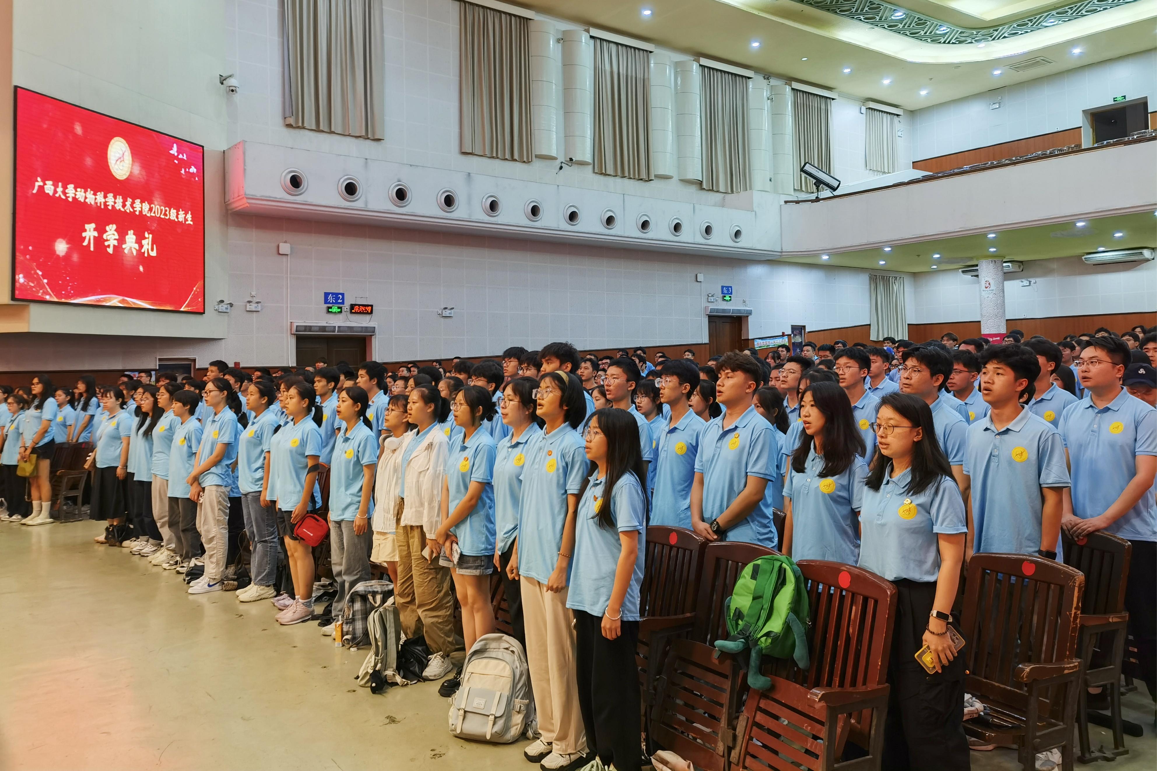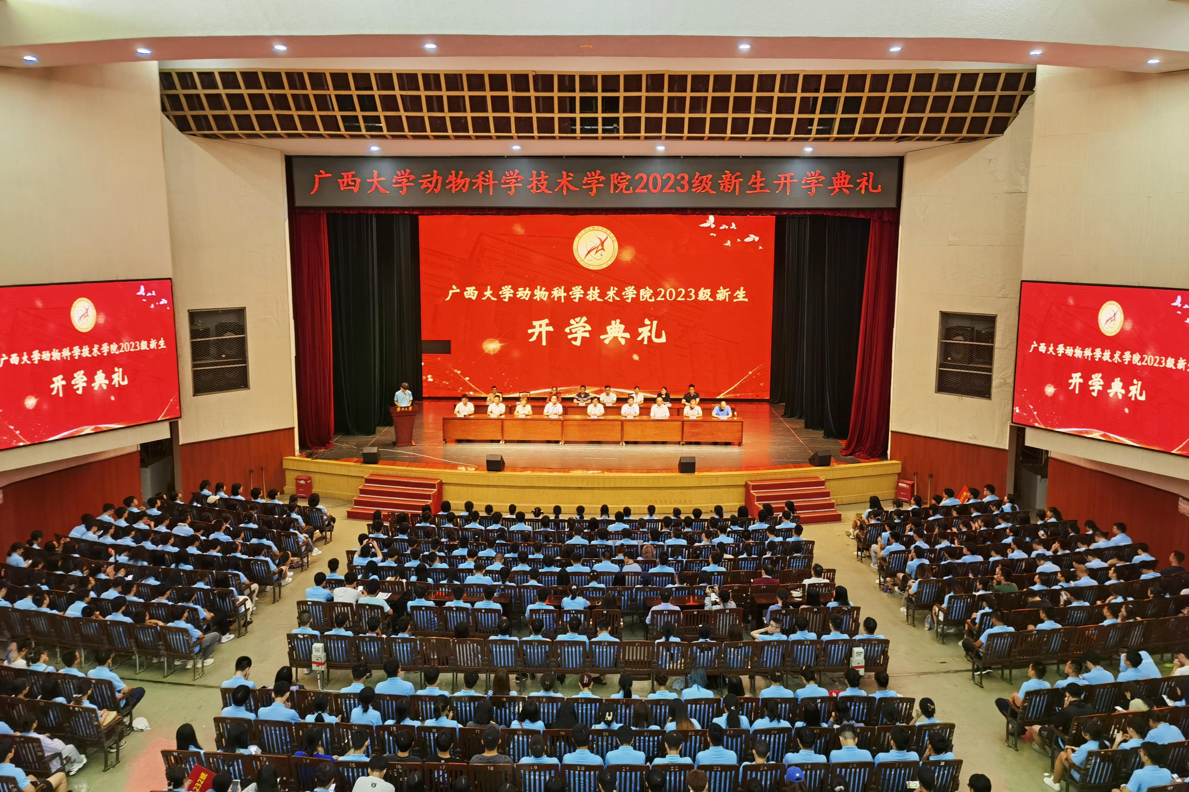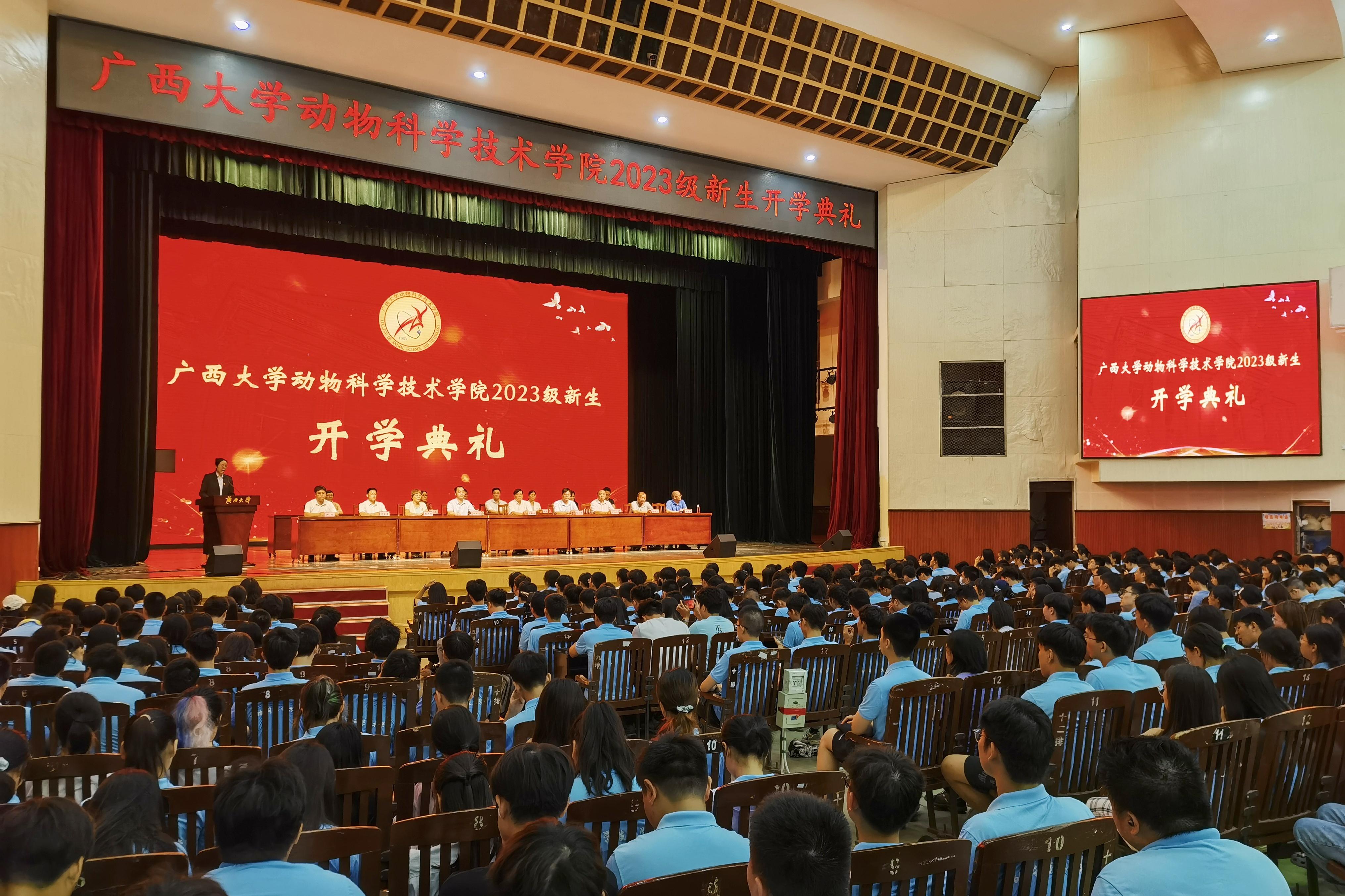 9月17日晚上,廣西大學(xué)動物科學(xué)技術(shù)學(xué)院2023級新生開學(xué)典禮在大禮堂舉行。動物遺傳育種與繁殖學(xué)科知名專家石德順,動物科學(xué)技術(shù)學(xué)院黨委書記韋小強,院長陸陽清,農(nóng)牧產(chǎn)業(yè)發(fā)展研究院院長司紅彬,動物科學(xué)技術(shù)學(xué)院原書記、五級職員顧慕嫻,副院長寧鵬飛、何家康、韋祖樟出席典禮。動物科學(xué)技術(shù)學(xué)院黨委副書記沙建主持典禮。知名專家和教師代表、班主任、輔導(dǎo)員以及2023級584名新生參加活動。