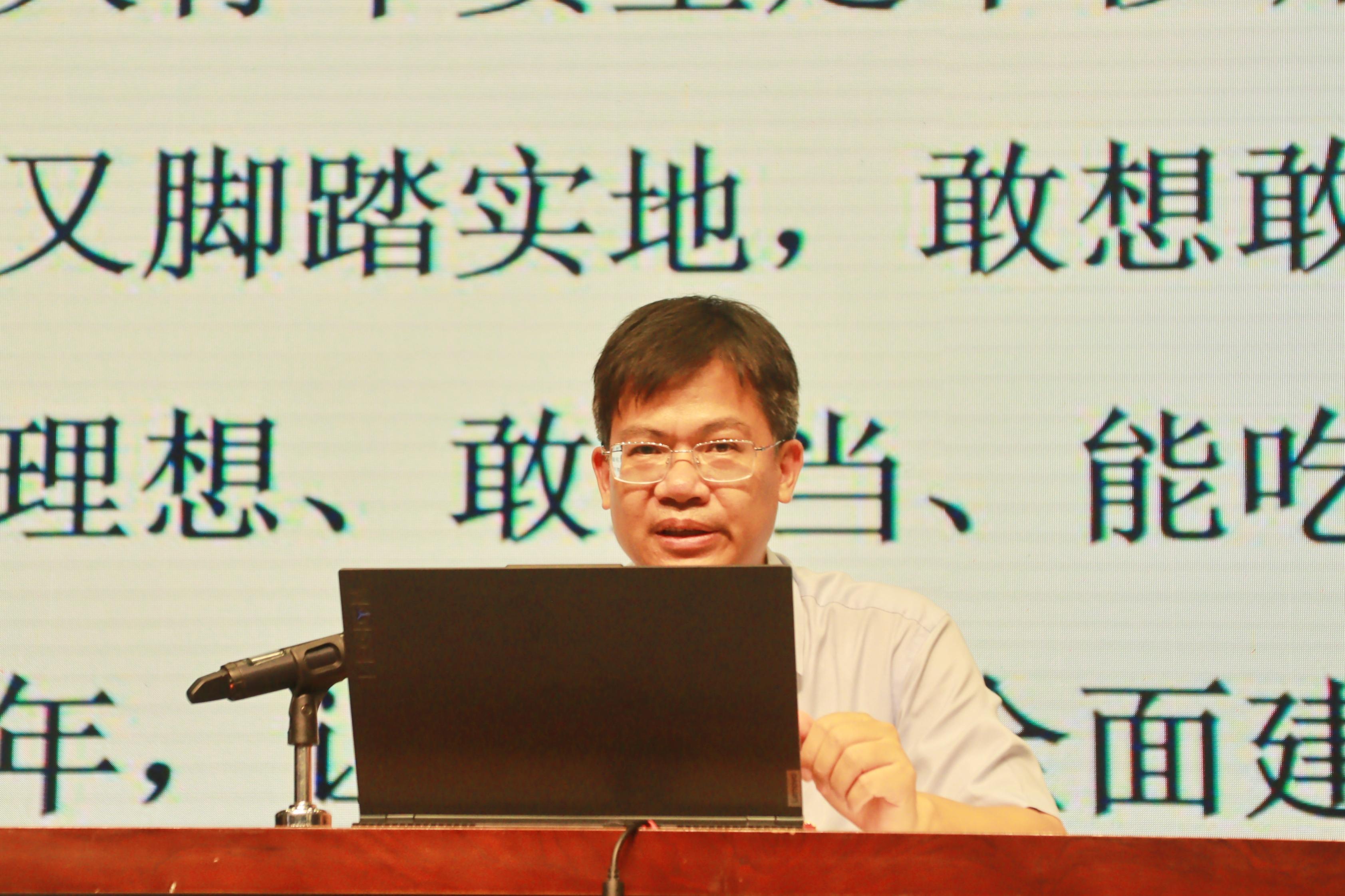 9月17日晚,廣西大學(xué)動物科學(xué)技術(shù)學(xué)院黨委書記韋小強以《與時代同心同向,在激情奮斗中綻放青春光芒》為題,在大禮堂為2023級全體新生作入黨啟發(fā)教育專題報告。