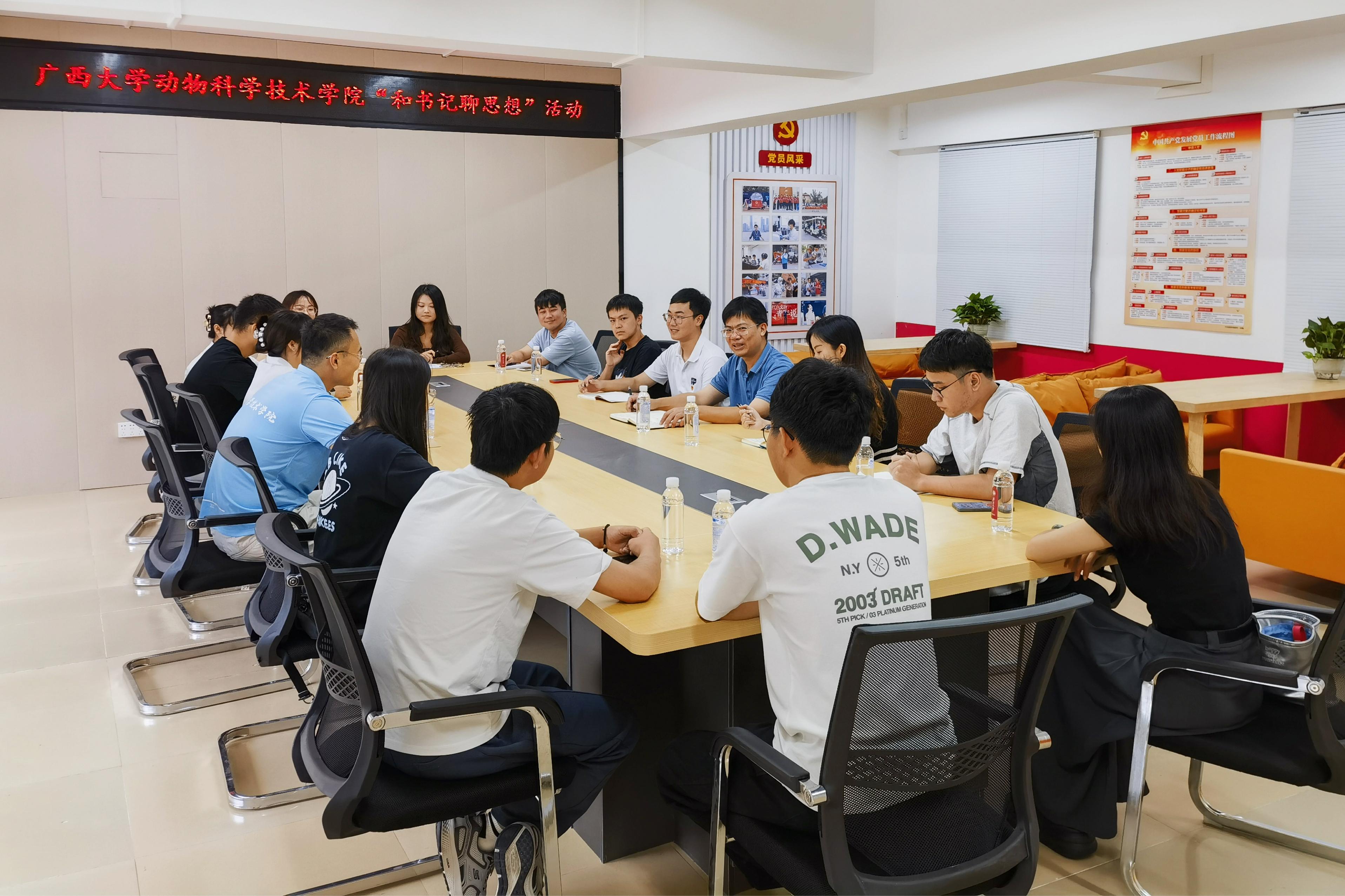 9月28日上午,廣西大學(xué)動物科學(xué)技術(shù)學(xué)院黨委書記韋小強走進(jìn)學(xué)生社區(qū),在西21棟黨員活動室開展“和書記聊思想”活動,面對面了解學(xué)生思想動態(tài)、學(xué)習(xí)工作、日常生活等方面情況。動物科學(xué)技術(shù)學(xué)院團(tuán)委書記李麗娜,團(tuán)委副書記劉誠,輔導(dǎo)員馬朝陽,以及2023級研究生代表參加座談。