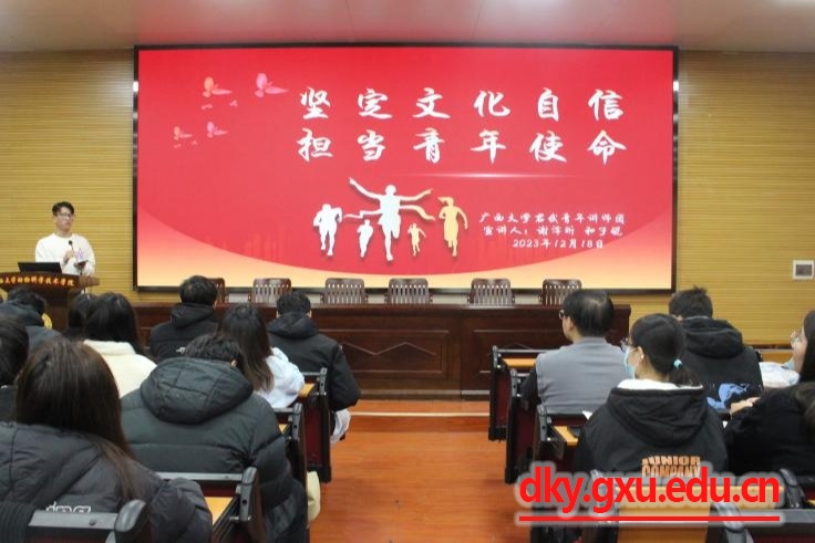 12月17日晚上,廣西大學動物科學技術學院2023年新任學生骨干培訓會暨君武青年講師團宣講活動在學院318報告廳舉行。學院團委書記李麗娜、君武青年講師團成員謝澤昕、和子錕以及五十余名新任學生骨干參加。