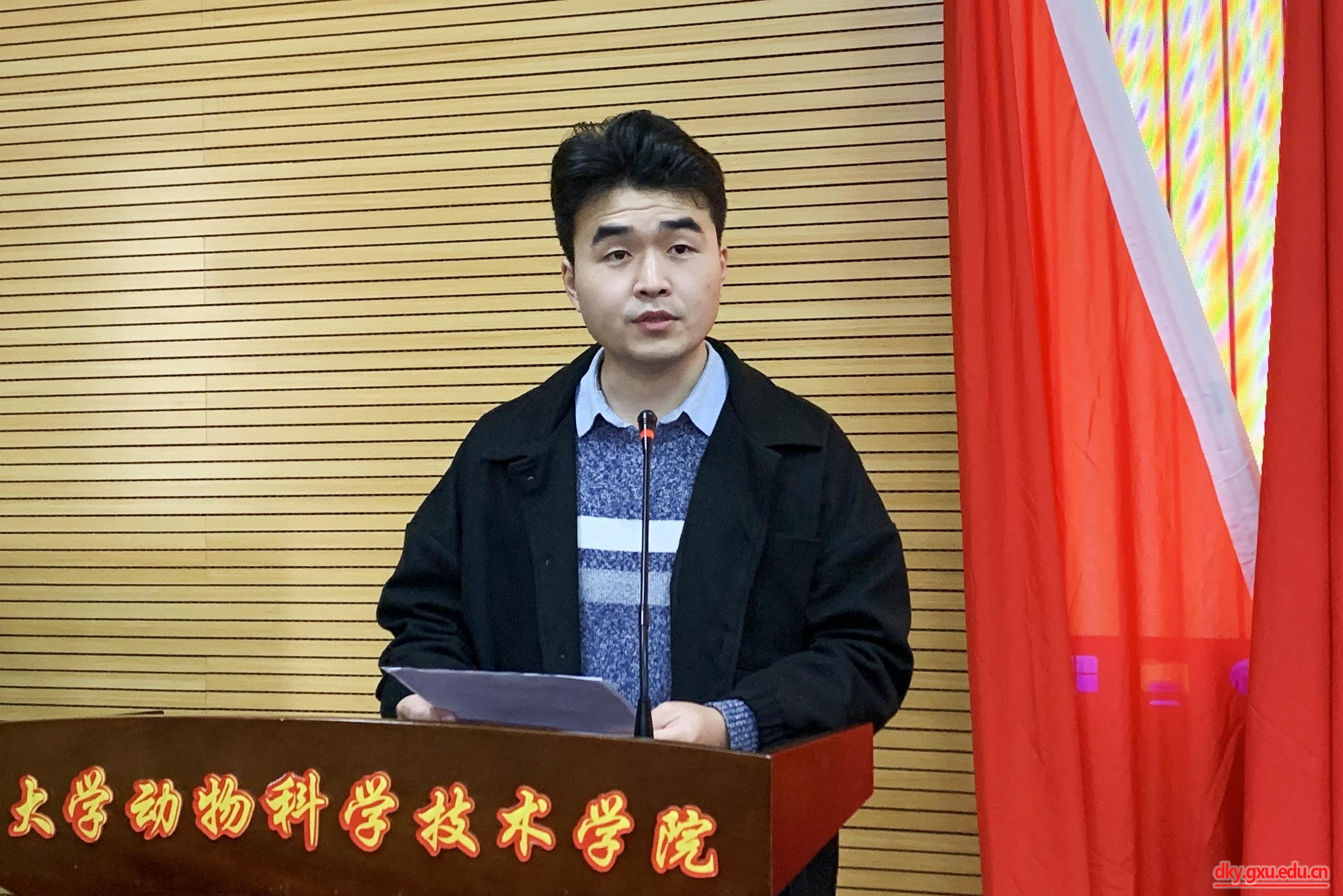 12月28日上午,廣西大學動物科學技術(shù)學院第十四次研究生代表大會在學院318報告廳召開。動物科學技術(shù)學院黨委副書記沙建,團委書記李麗娜出席大會并講話,來自23個研究生班級的106名學生代表參加大會。動物科學技術(shù)學院團委副書記、研究生會秘書長劉誠主持會議。