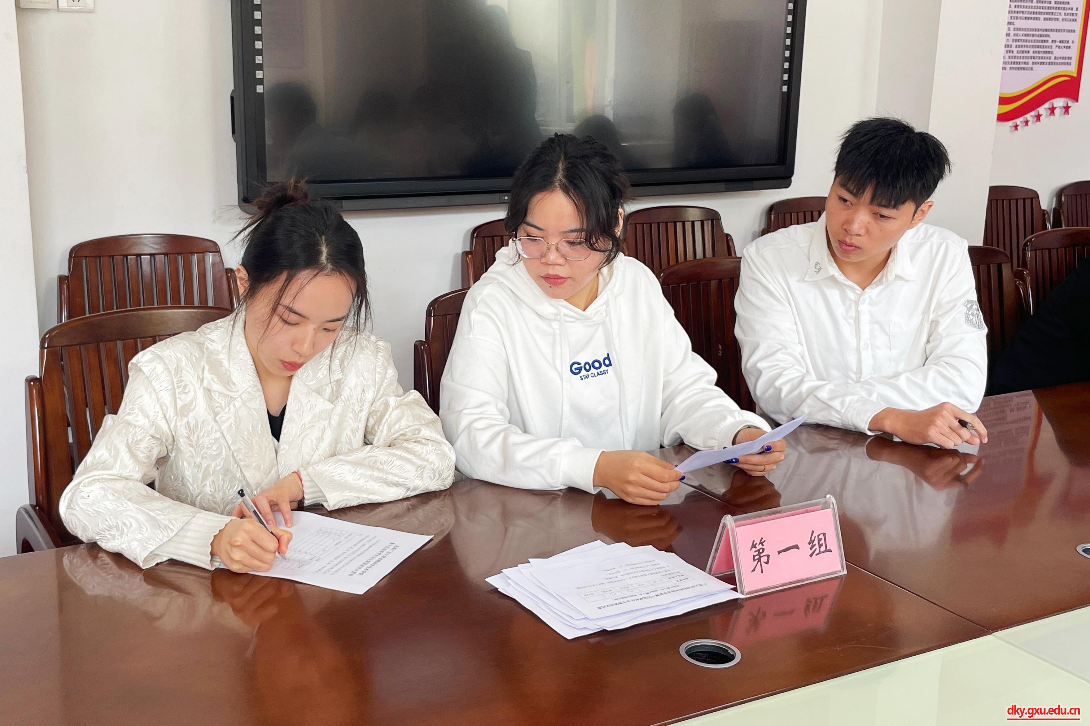 廣西大學研究生會主席團成員廖文杰同學、計算機與電子信息學院研究生會主席團成員王子威同學分別在大會上致辭。