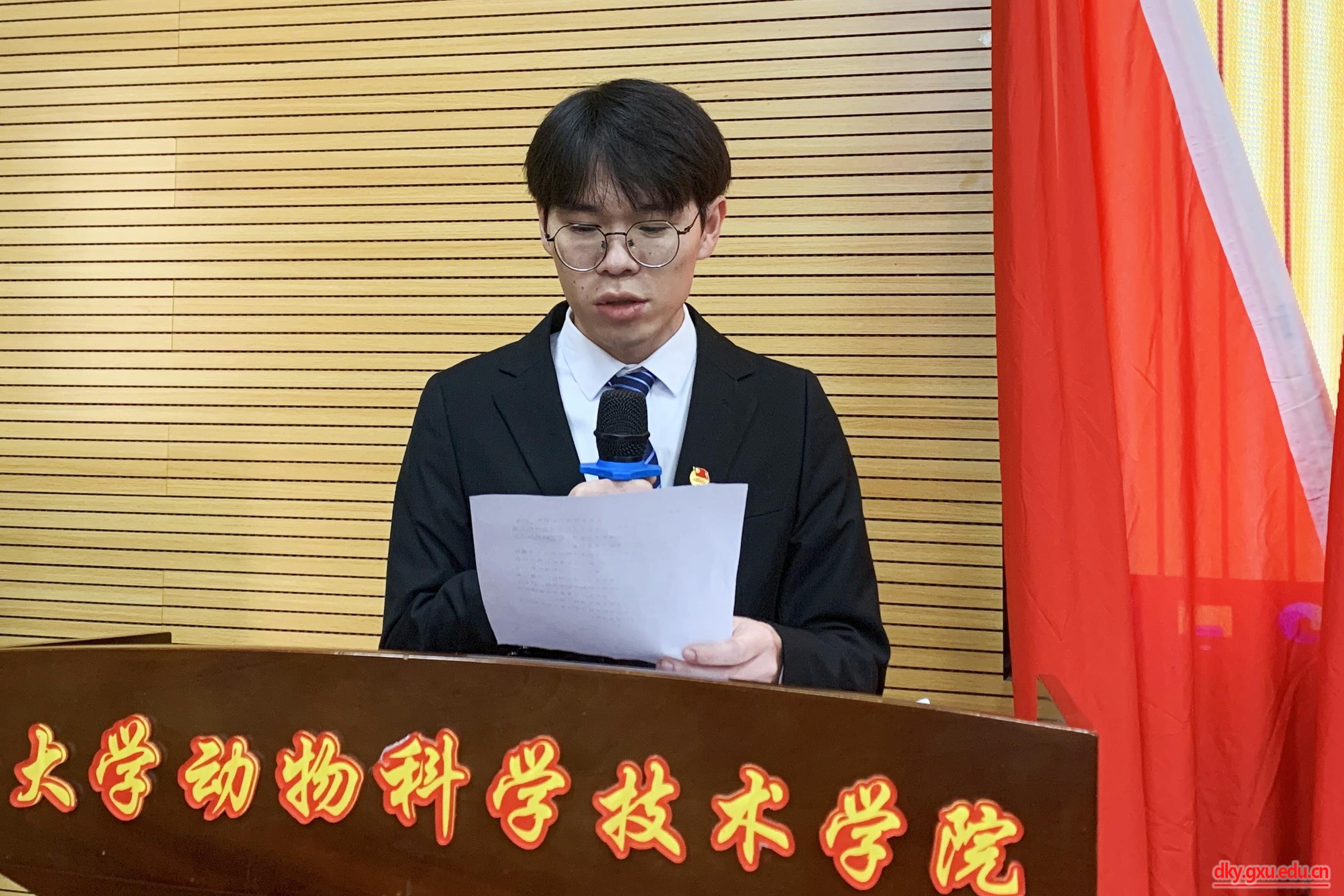 參會學生代表聽取并審議了動物科學技術(shù)學院第十三屆研究生會執(zhí)行主席黃麗柔同學作的題為《學思踐悟新思想,砥礪奮進新征程,聚焦高質(zhì)量發(fā)展主題,服務研究生成長成才,為廣西大學建設(shè)特色鮮明的國內(nèi)一流綜合性研究型大學貢獻青春力量》的工作報告。報告總結(jié)了研究生會一年來在加強思想引領(lǐng)、健全完善制度、堅持從嚴治會、聚焦主責主業(yè)等方面開展的主要工作及取得的經(jīng)驗成績,明確了今后研究生會工作的主要目標和重點任務,并號召廣大同學秉承“勤懇樸誠 厚學致新”的校訓精神,為把廣西大學建設(shè)成為特色鮮明的國內(nèi)一流綜合性研究型大學踔厲奮發(fā),為“建設(shè)壯美廣西 共圓復興夢想”努力拼搏,為實現(xiàn)中華民族偉大復興貢獻青春和力量!