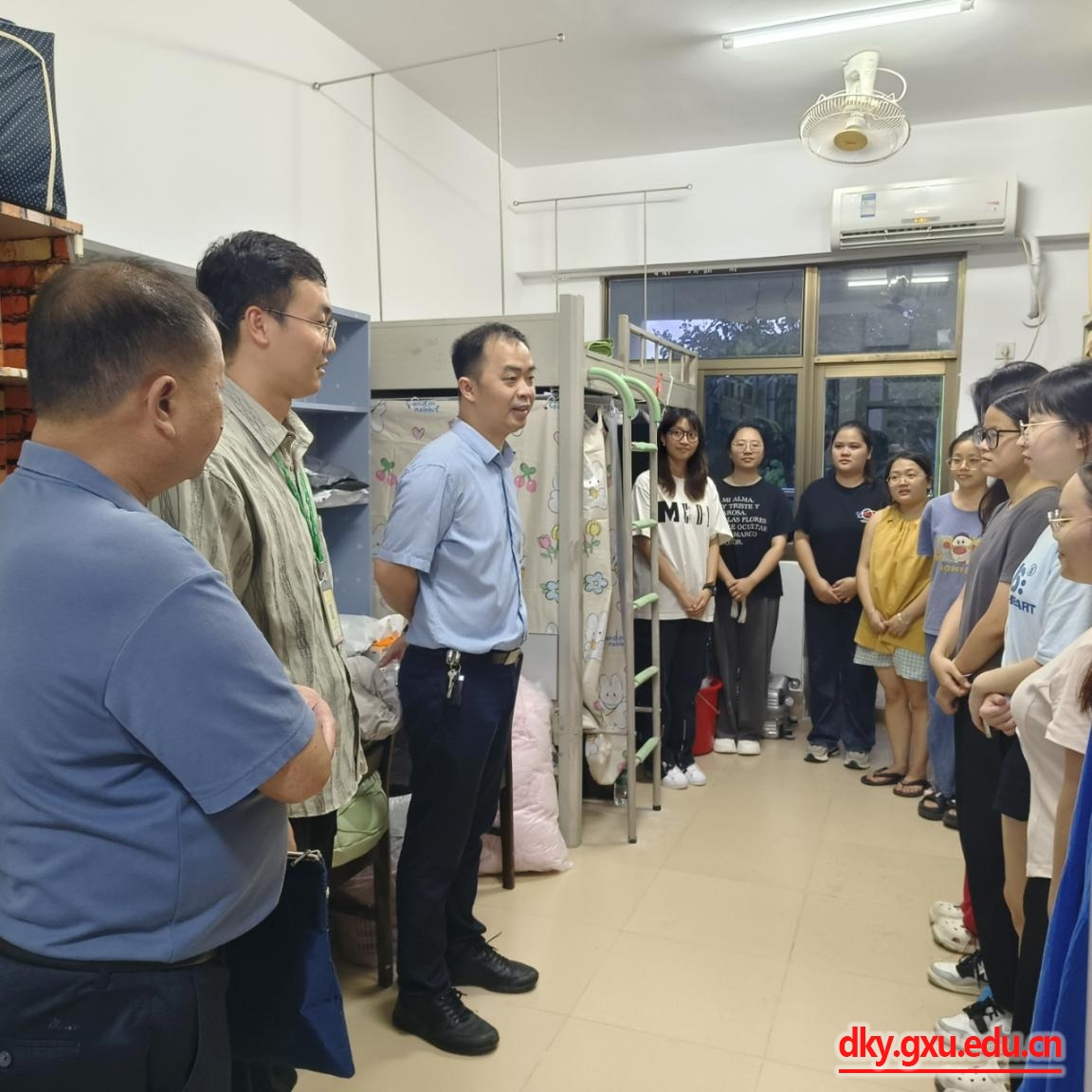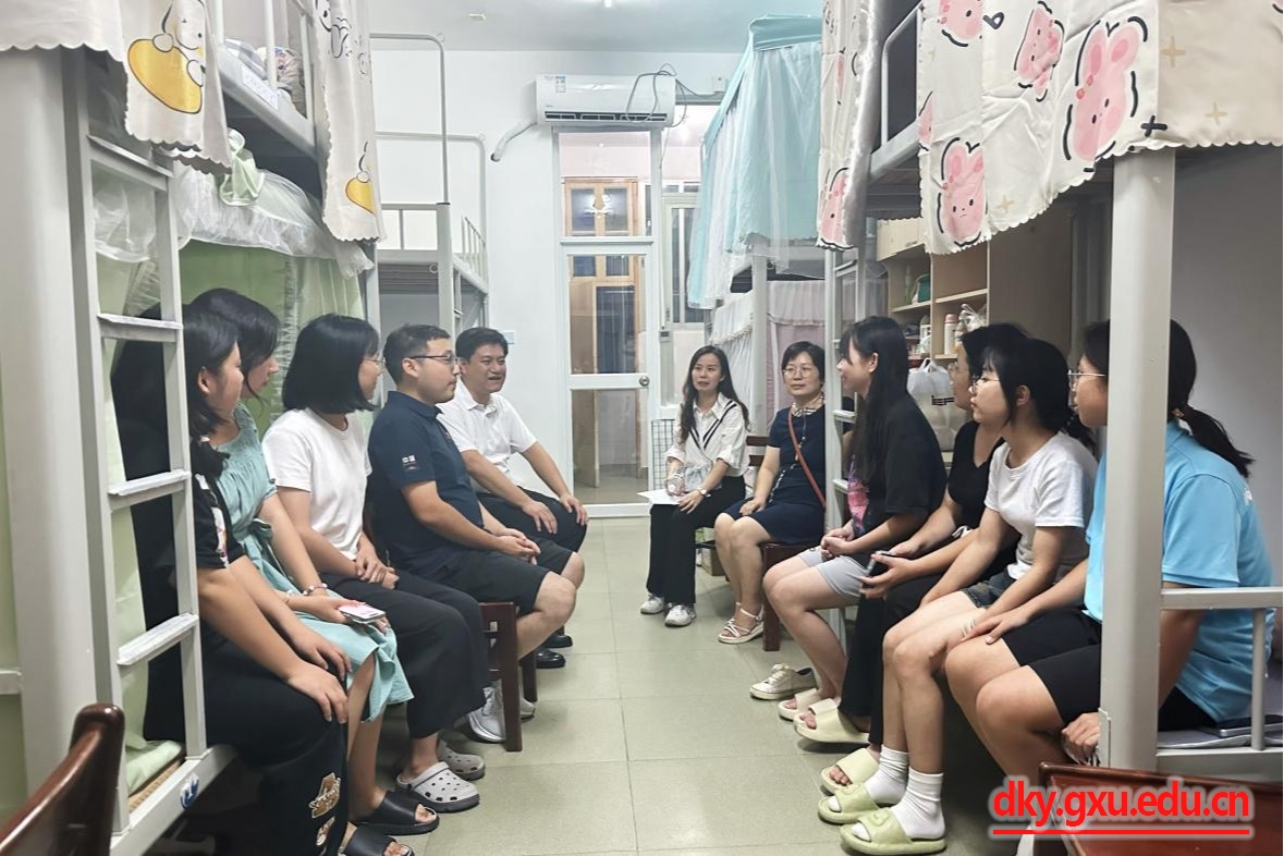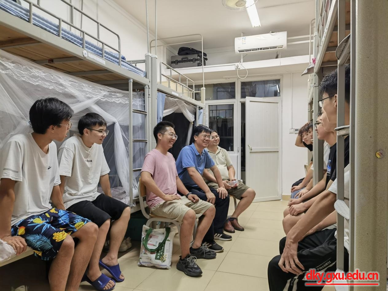 9月1日晚上,廣西大學(xué)動物科學(xué)技術(shù)學(xué)院黨委書記韋小強(qiáng),院長陸陽清,黨委副書記沙建,副院長寧鵬飛、何家康,團(tuán)委書記李麗娜,團(tuán)委副書記劉誠,輔導(dǎo)員崔月明、鄒佳琪、馬朝陽,班主任尹業(yè)師、賀宇成、羅棟、時學(xué)鋒,以及團(tuán)委、學(xué)生會、研究生會學(xué)生骨干,來到東3棟、東19棟、東31棟和東34棟學(xué)生宿舍,走訪慰問2024級本科生、研究生。