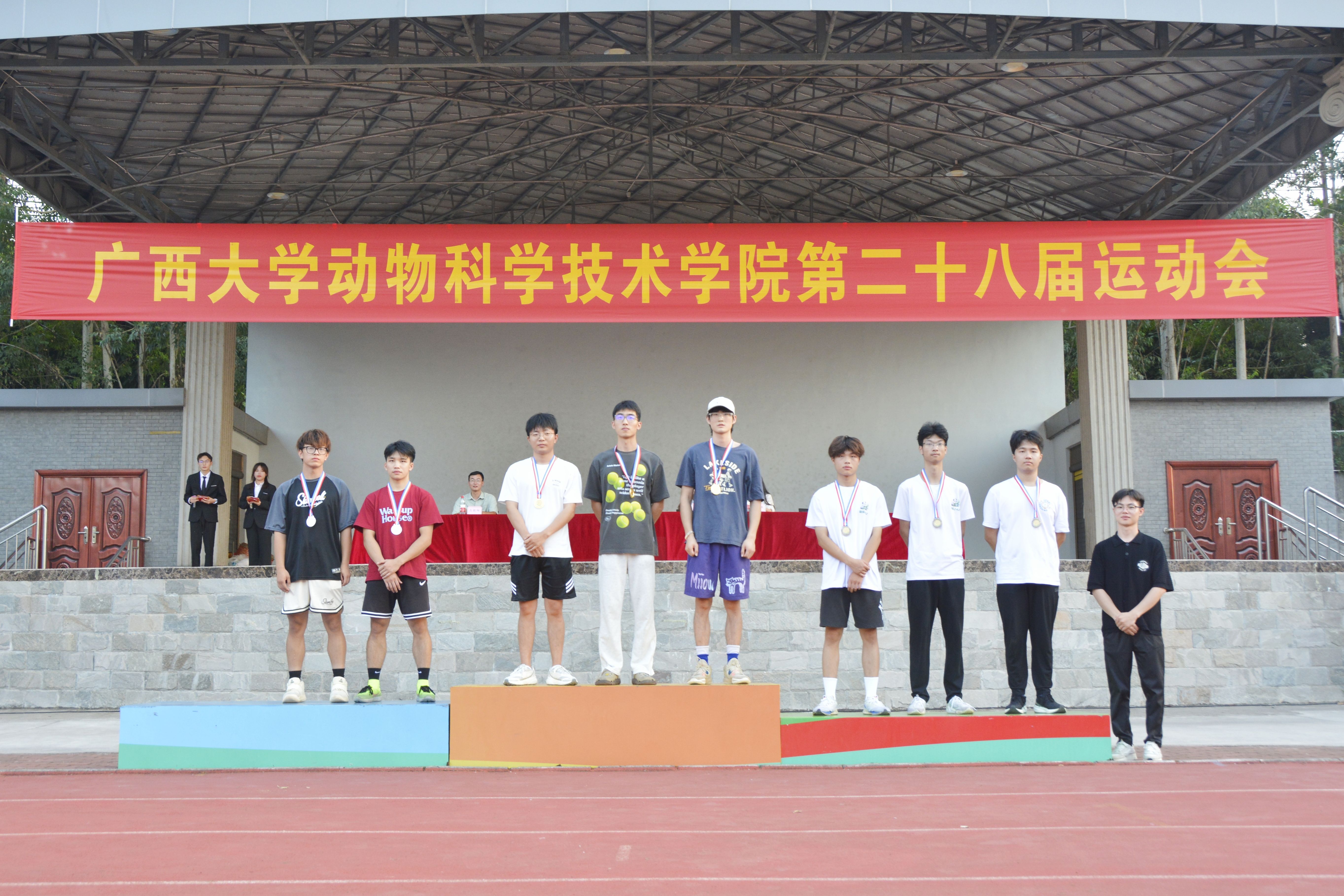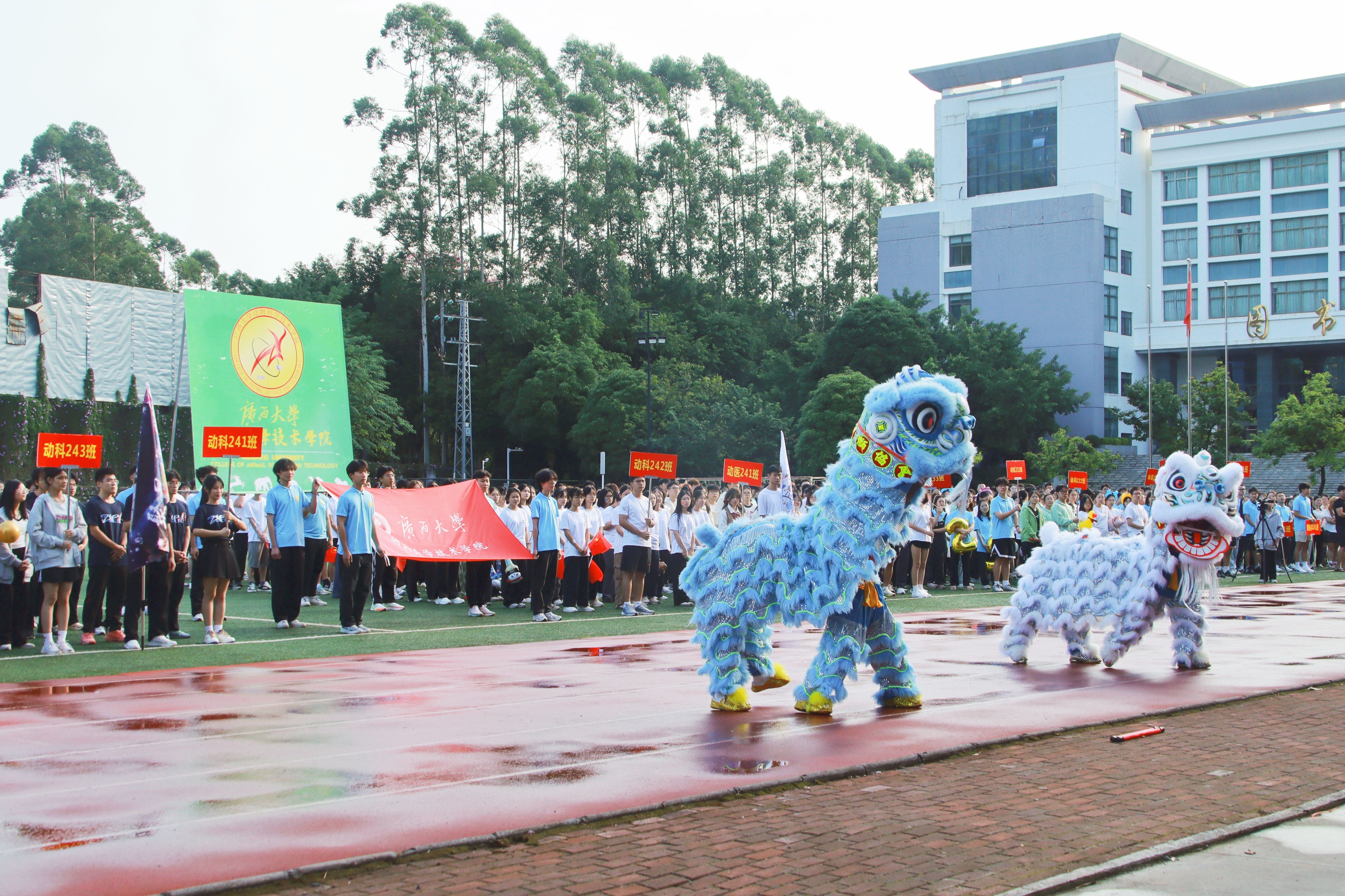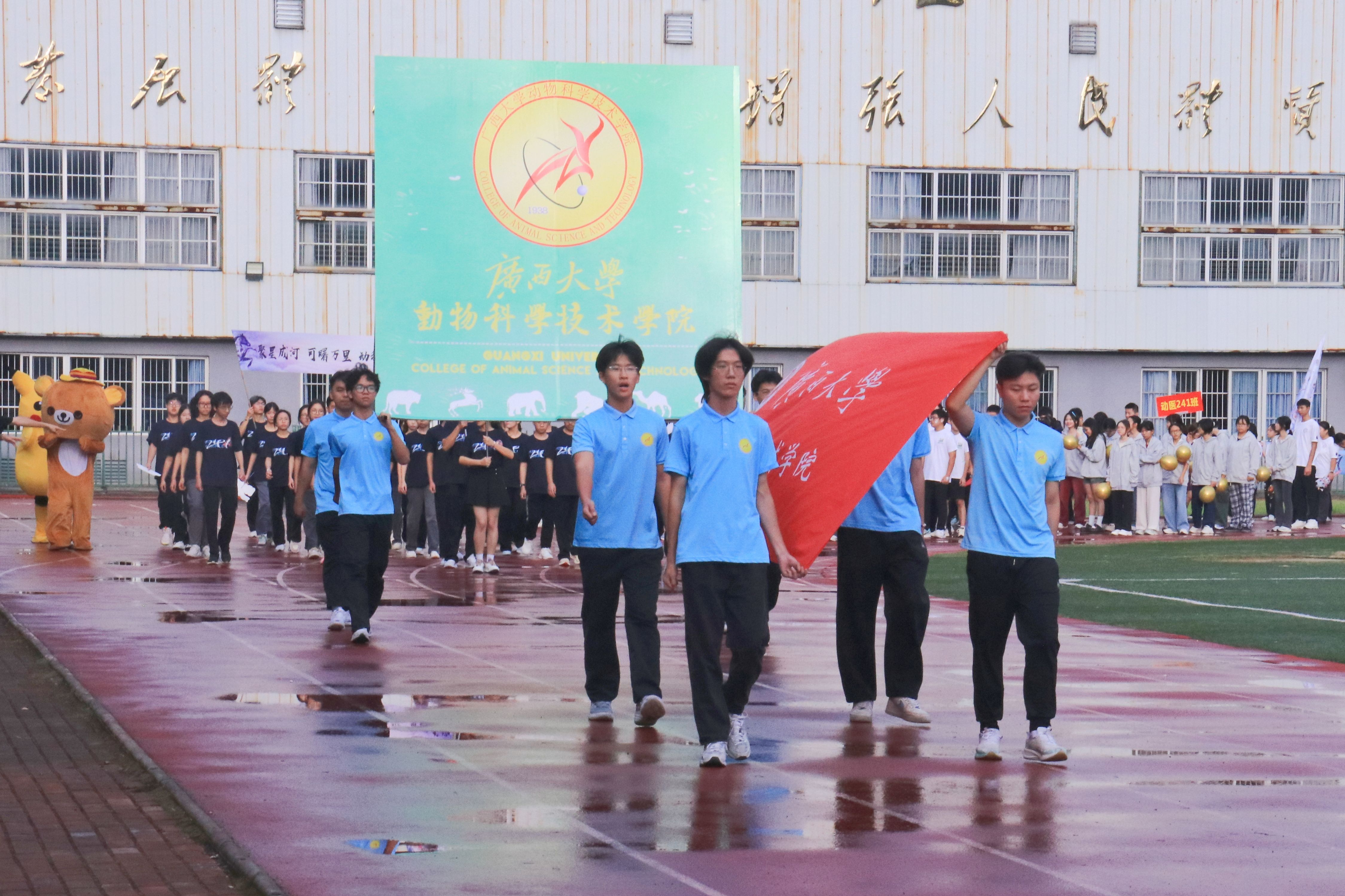 10月20日,廣西大學動物科學技術(shù)學院第二十八屆運動會在北校園田徑場隆重舉行。動物科學技術(shù)學院黨委書記韋小強,院長陸陽清,黨委副書記沙建,副院長何家康,動物科學系主任李輝,團委書記李麗娜,團委副書記劉誠,輔導員崔月明、鄒佳琪、馬朝陽、陸維鴻,雙胞胎集團桂南省區(qū)公司總經(jīng)理李朝軍,人資經(jīng)理李德旋,以及全體本科生、研究生參加此次活動。