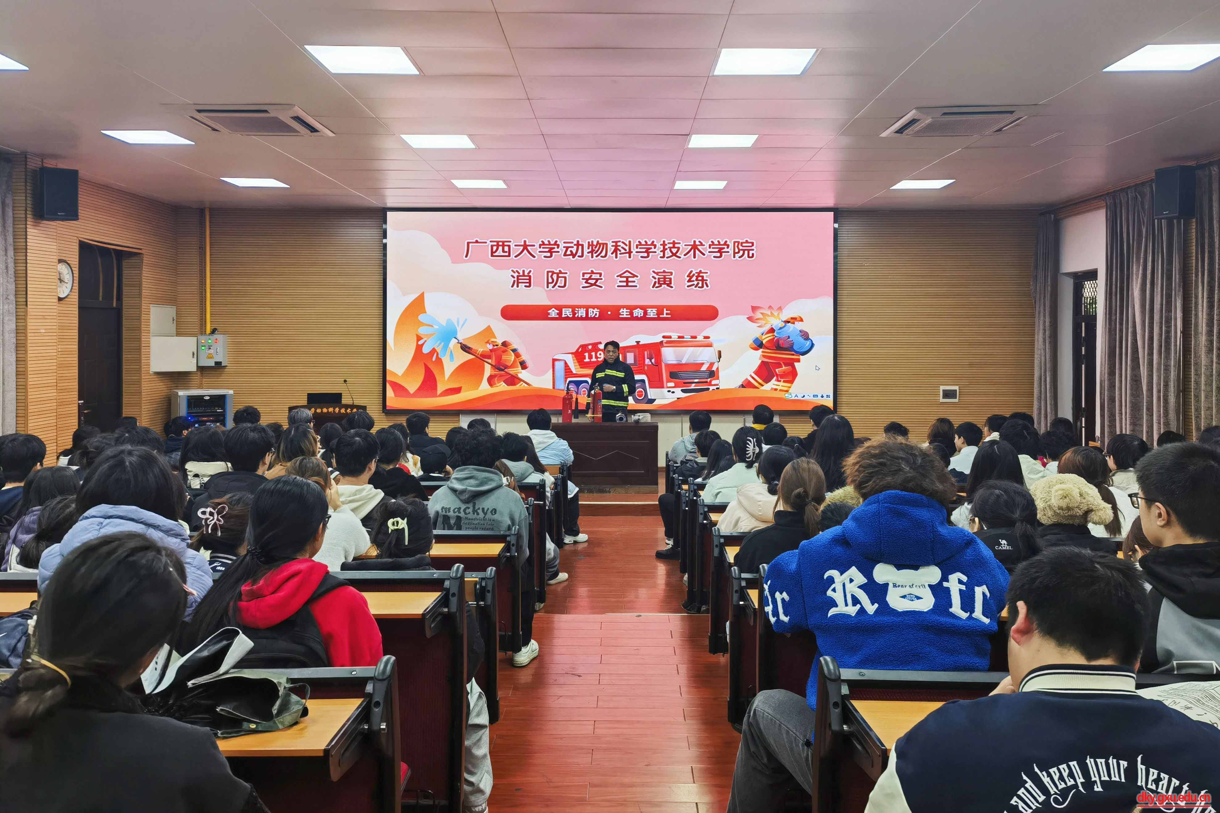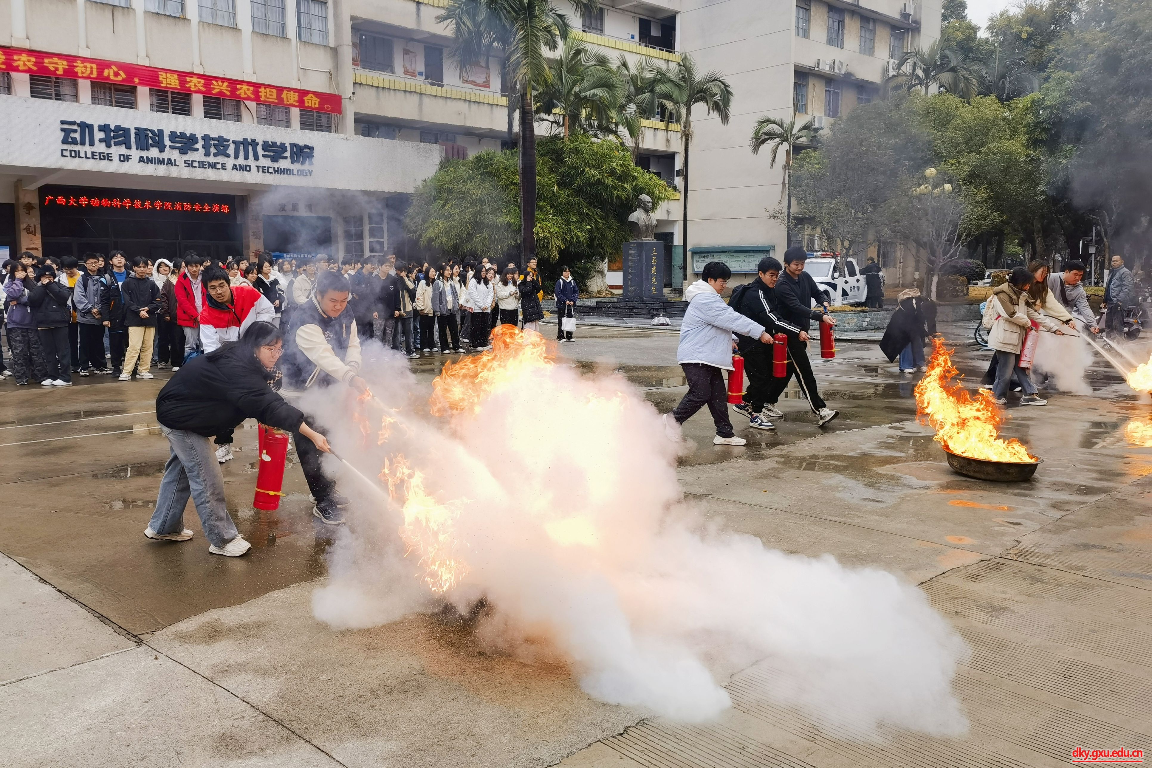 為貫徹落實(shí)自治區(qū)教育廳、自治區(qū)安委會(huì)關(guān)于切實(shí)加強(qiáng)冬季防火有關(guān)工作部署以及學(xué)校加強(qiáng)消防安全相關(guān)工作要求,切實(shí)筑牢校園消防安全防線,12月27日上午,廣西大學(xué)動(dòng)物科學(xué)技術(shù)學(xué)院在318報(bào)告廳及前坪組織學(xué)生開展消防安全演練。
