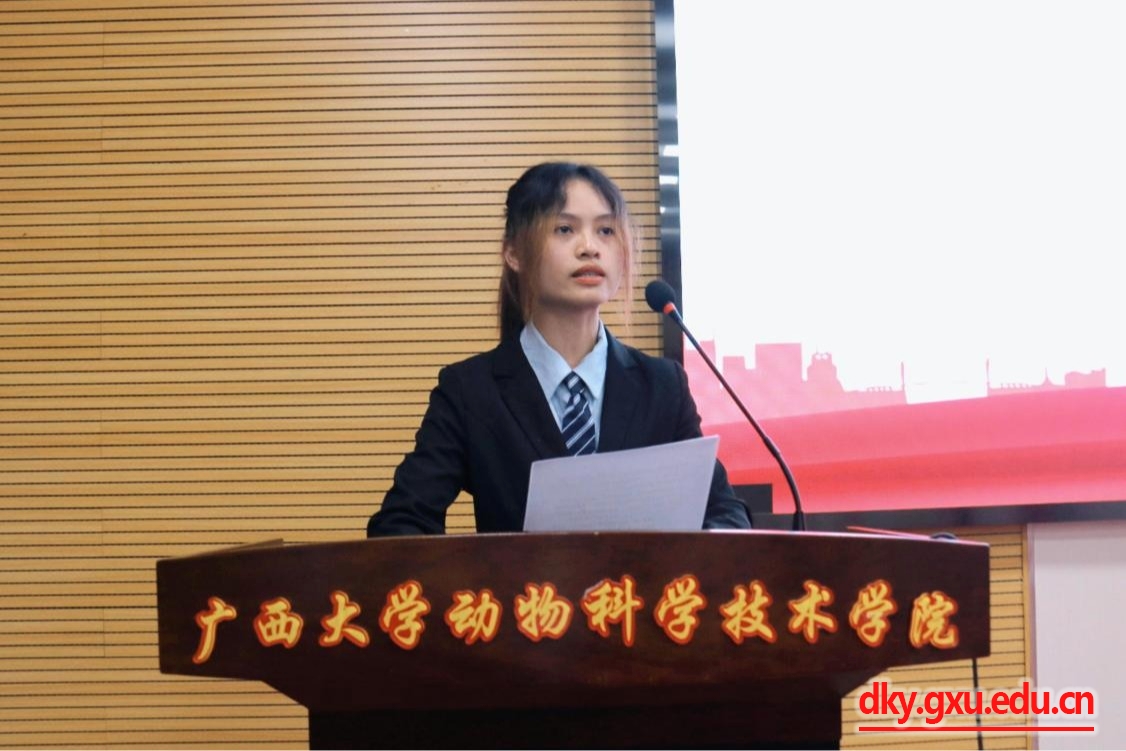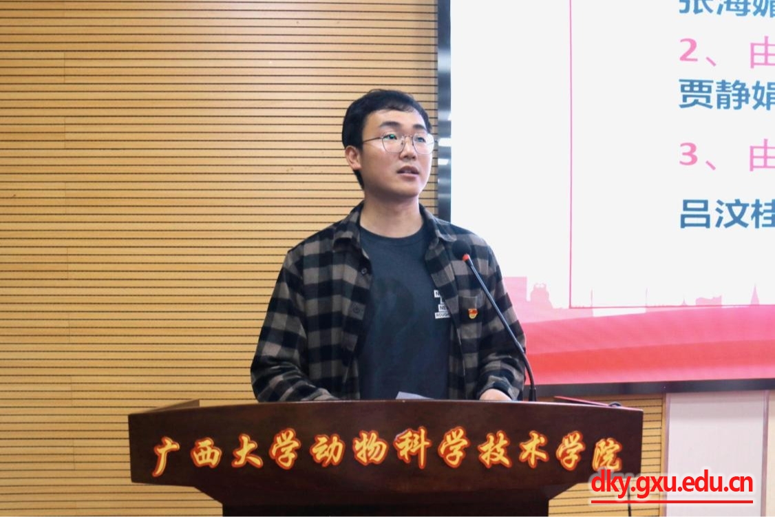 劉誠老師宣讀《關于同意動物科學技術(shù)學院青年先鋒連2025年上半年學生干部調(diào)整的批復》。