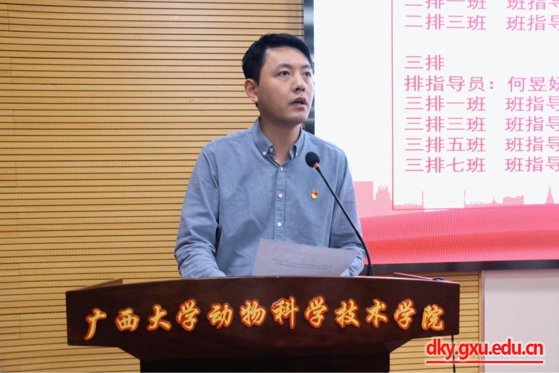 3月28日晚上,廣西大學動物科學技術(shù)學院青年先鋒連在學院318報告廳舉辦2025年上半年升排大會。動物科學技術(shù)學院副院長蔣欽楊,學院團委書記劉誠,輔導員馬朝陽、陸維鴻出席活動。