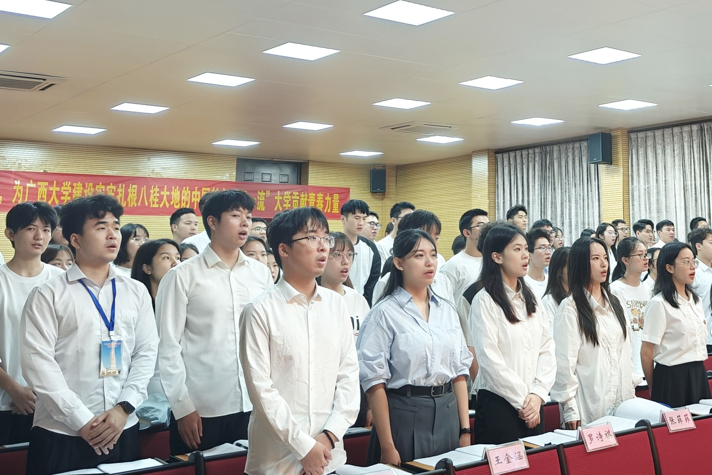 廣西大學研究生會主席團成員覃湘怡同學、計算機與電子信息學院研究生會執(zhí)行主席史承悅同學分別在大會上致辭。