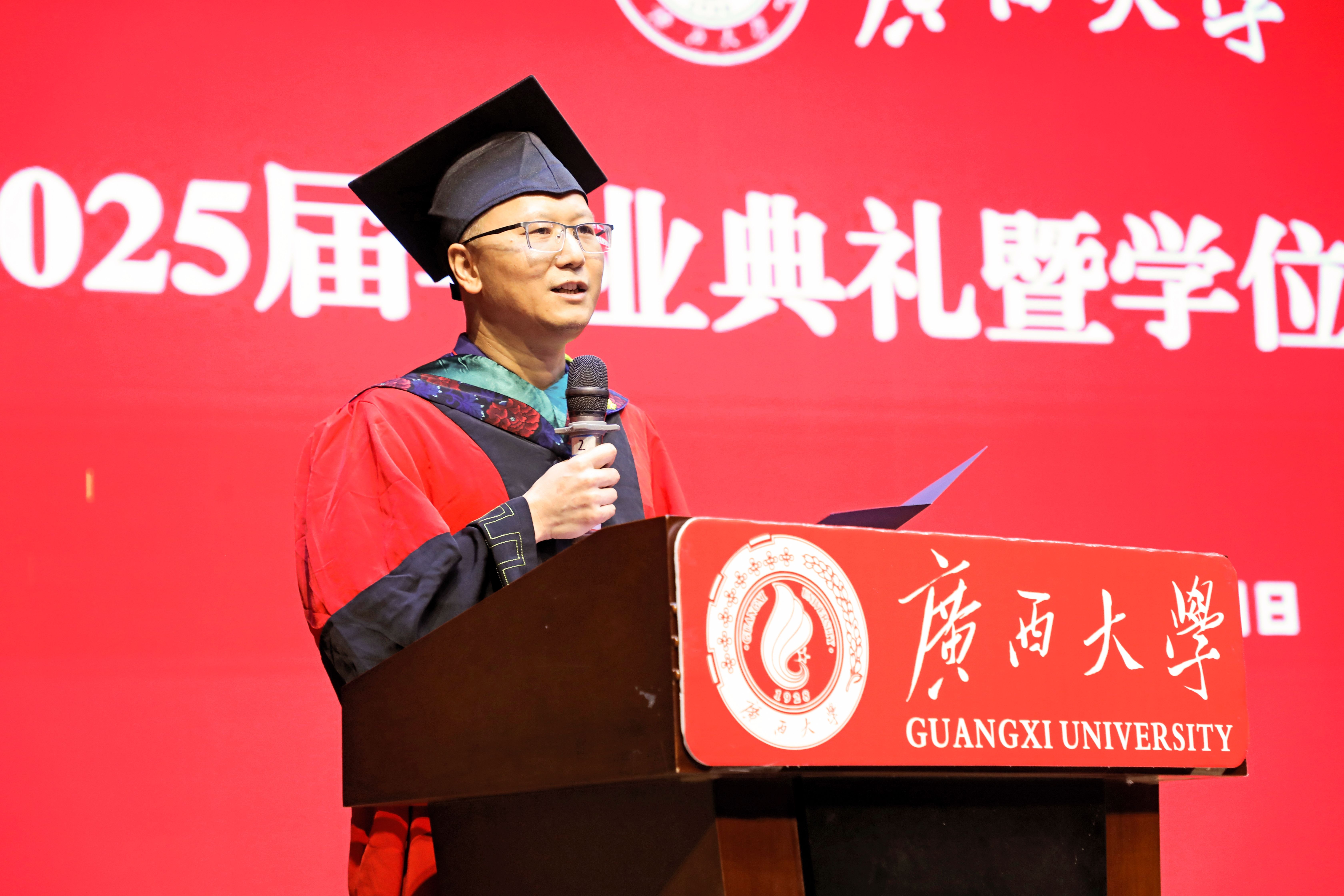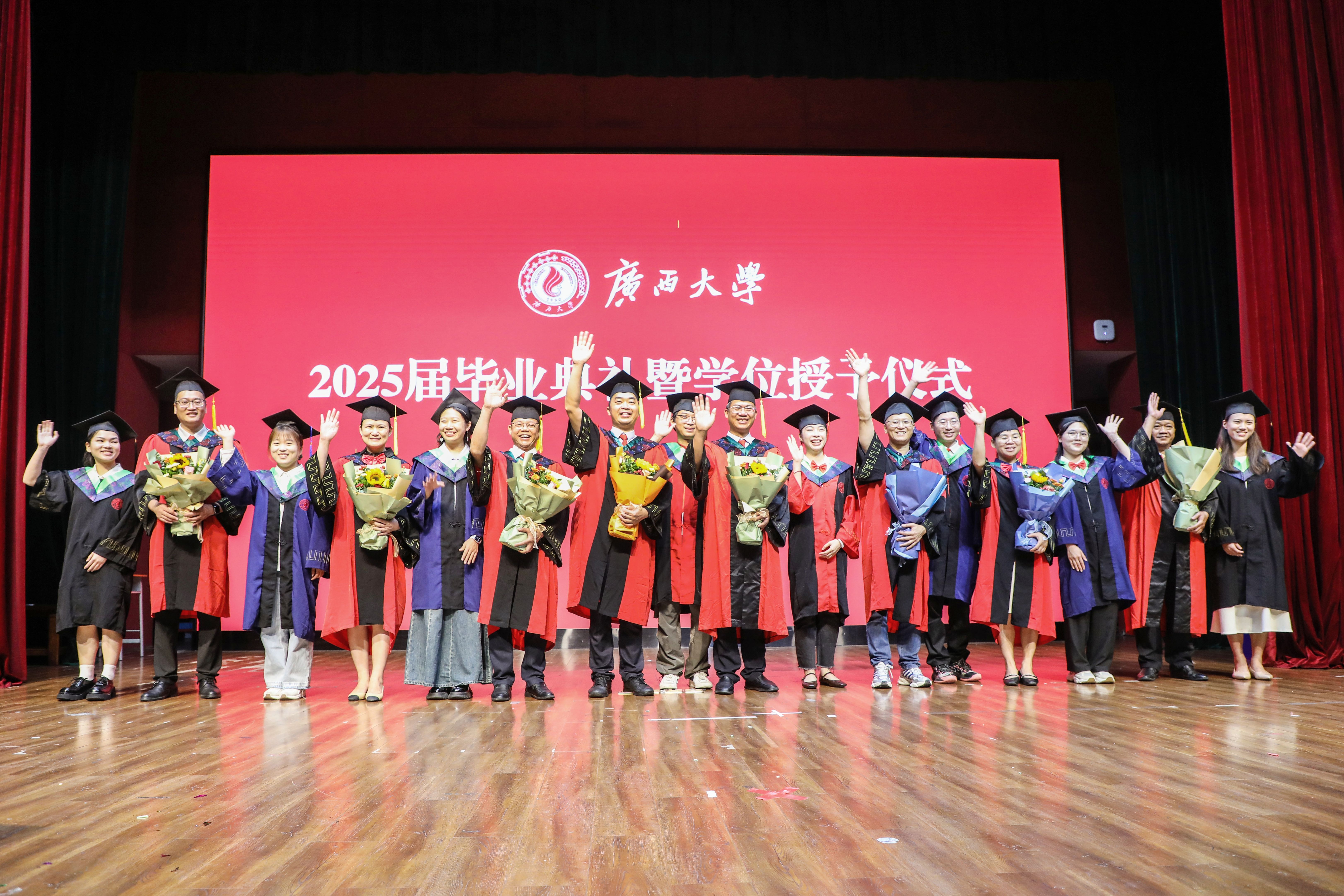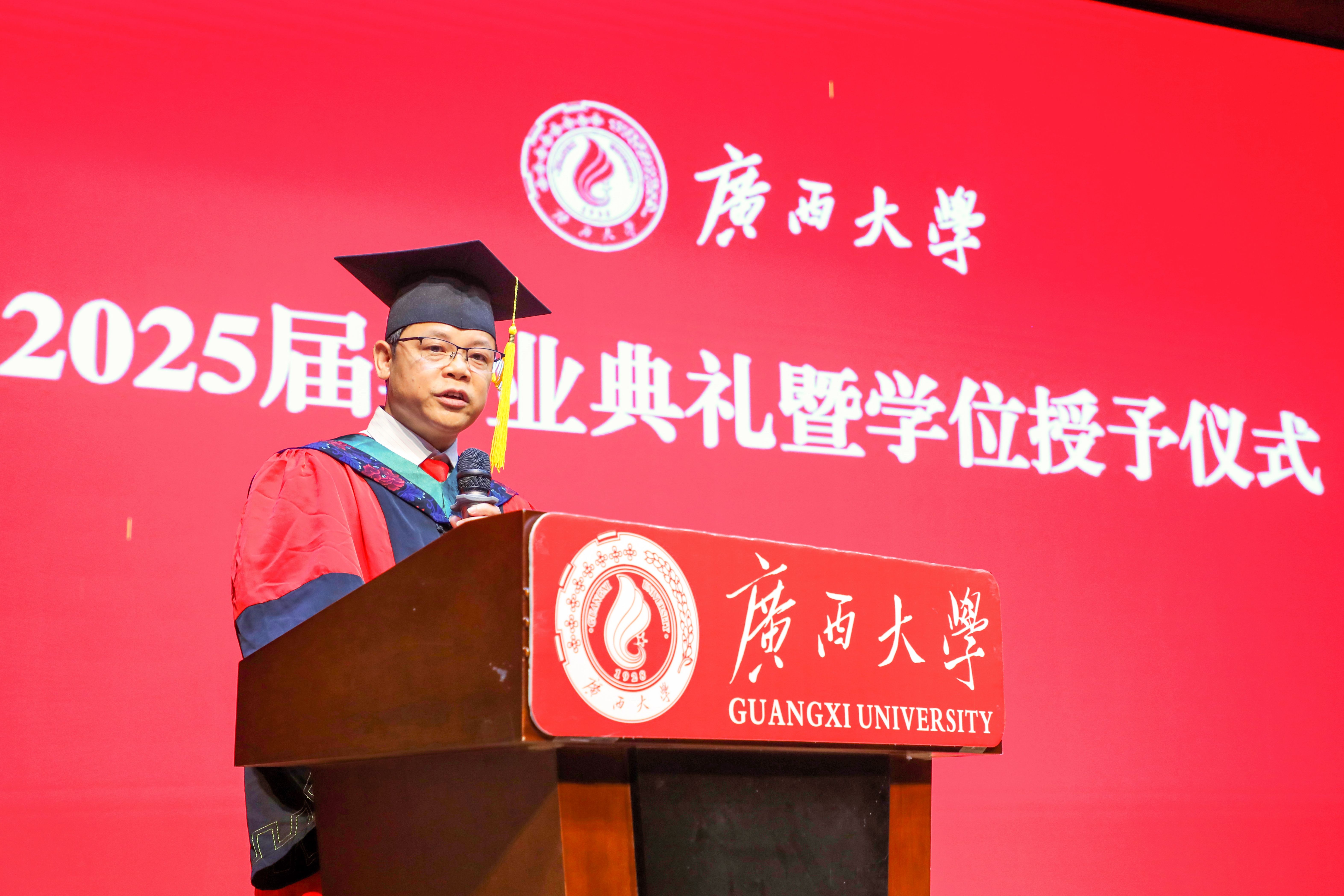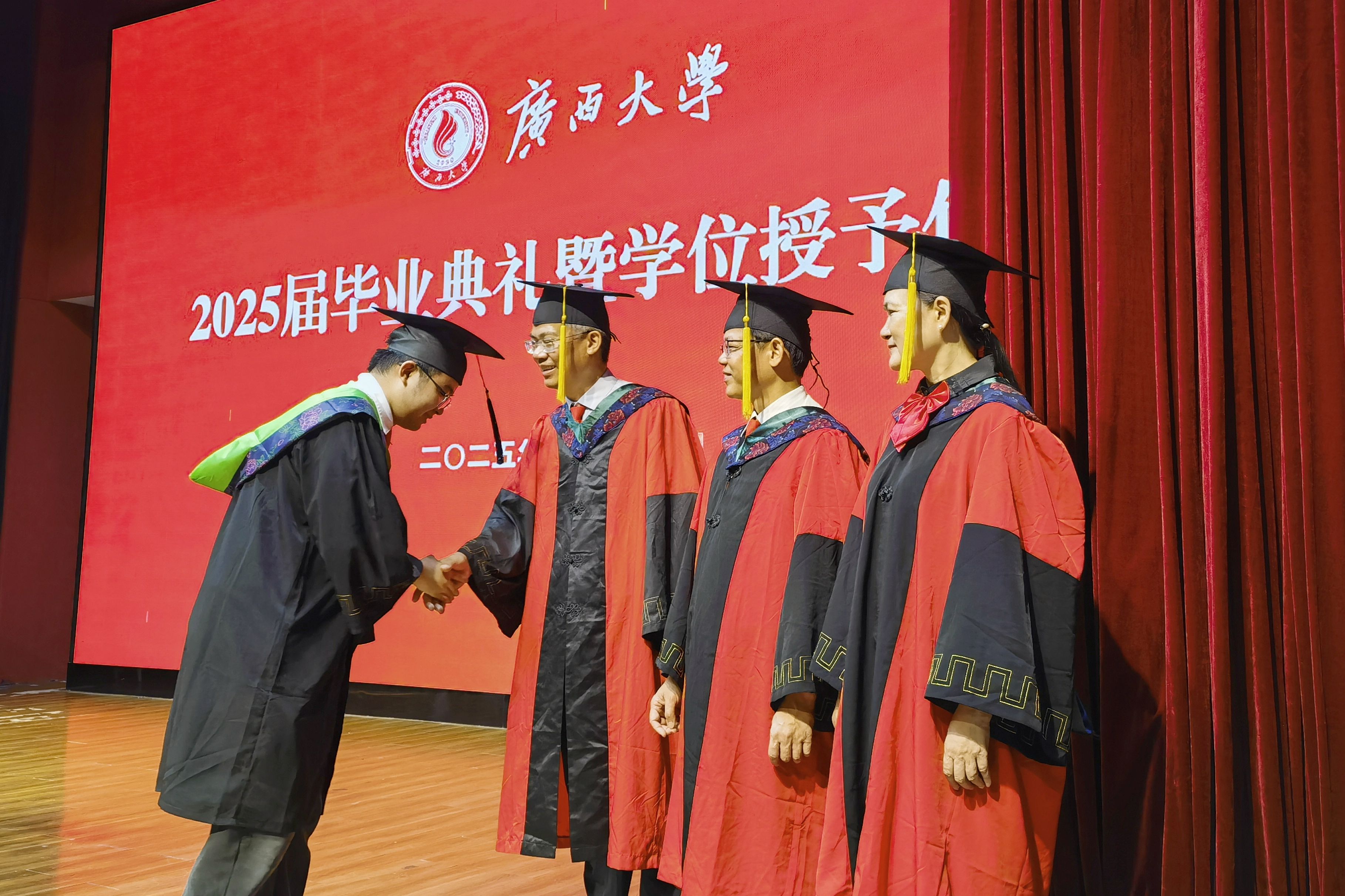 “復(fù)興中華,發(fā)達(dá)廣西”“努力,努力,大家一齊努力”,2025屆畢業(yè)典禮暨學(xué)位授予儀式在奏唱校歌聲中落下帷幕。