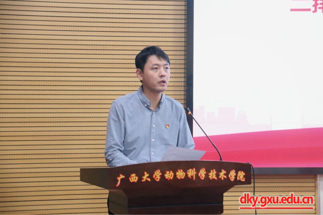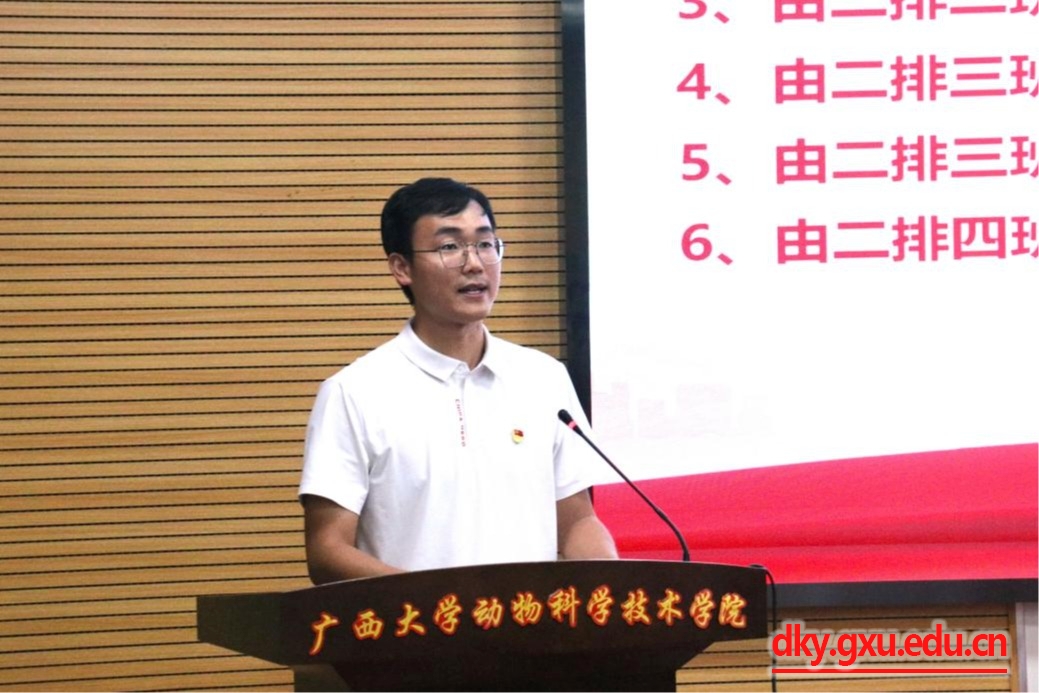 10月28日晚上,廣西大學(xué)動(dòng)物科學(xué)技術(shù)學(xué)院青年先鋒連在學(xué)院318報(bào)告廳舉辦2025年下半年升排大會(huì)。廣西大學(xué)動(dòng)物科學(xué)技術(shù)學(xué)院黨委副書記楊雪,團(tuán)委書記劉誠,團(tuán)委副書記馬朝陽,輔導(dǎo)員陸維鴻、覃湘怡出席活動(dòng)。