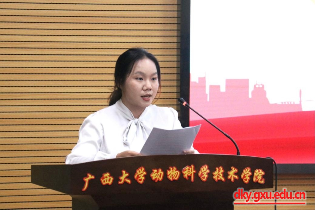 劉誠老師宣讀《關(guān)于同意動(dòng)物科學(xué)技術(shù)學(xué)院青年先鋒連2025年下半年學(xué)生干部調(diào)整的批復(fù)》。