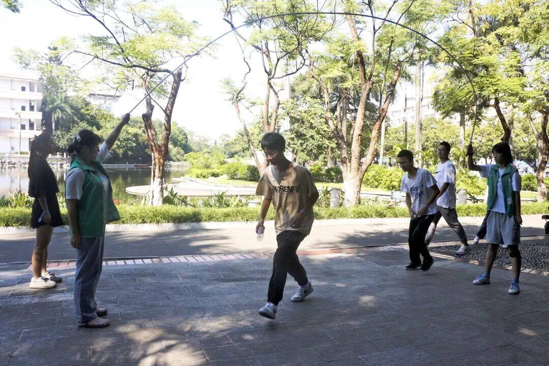 活動(dòng)伊始,現(xiàn)場(chǎng)就充滿(mǎn)了輕松愉悅的氛圍。第一個(gè)項(xiàng)目是跳繩挑戰(zhàn),這看似簡(jiǎn)單的運(yùn)動(dòng),實(shí)則考驗(yàn)著成員們的個(gè)人技巧與團(tuán)隊(duì)協(xié)作。單人跳繩環(huán)節(jié),成員們各展身手,輕盈的身姿在繩間跳躍,繩子在空中劃出一道道優(yōu)美的弧線(xiàn),發(fā)出有節(jié)奏的“呼呼”聲。有的成員身手敏捷,跳繩速度極快,引得周?chē)囮嚭炔剩挥械某蓡T雖稍顯生疏,但依然堅(jiān)持不懈,努力挑戰(zhàn)自己的極限。隨后的集體跳繩環(huán)節(jié)更是將氣氛推向了高潮,大家默契配合,喊著整齊的口號(hào),一同起跳、落地,仿佛一個(gè)緊密相連的整體。每一次成功的跳躍都伴隨著歡呼聲,讓成員們深刻感受到了團(tuán)隊(duì)的力量。