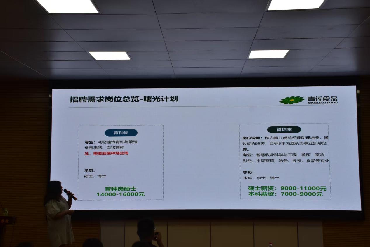 針對(duì)學(xué)子們最為關(guān)切的就業(yè)市場(chǎng)現(xiàn)狀,主講嘉賓重點(diǎn)剖析了當(dāng)前農(nóng)牧行業(yè)就業(yè)環(huán)境的核心特點(diǎn)與人才需求結(jié)構(gòu)。結(jié)合青蓮集團(tuán)及行業(yè)整體人員數(shù)據(jù),嘉賓清晰呈現(xiàn)了研發(fā)創(chuàng)新、生產(chǎn)管理、市場(chǎng)營(yíng)銷(xiāo)、質(zhì)量管控等關(guān)鍵環(huán)節(jié)的人才需求分布,強(qiáng)調(diào)行業(yè)對(duì)專(zhuān)業(yè)功底扎實(shí)、實(shí)踐能力突出、具備跨界思維的復(fù)合型人才需求日益旺盛。