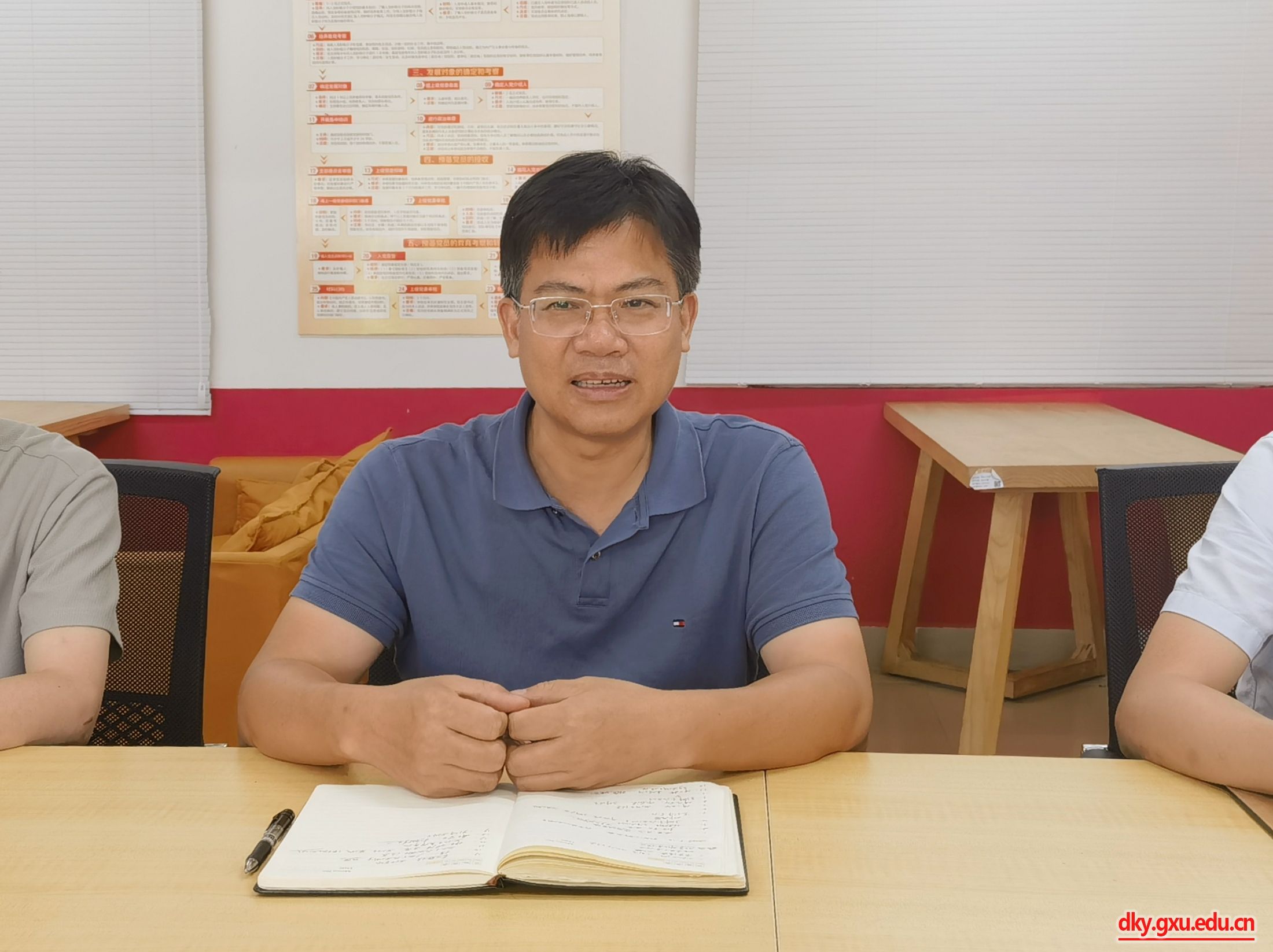 5月12日下午,廣西大學動物科學技術學院黨委書記韋小強走進學生社區(qū),在西21棟黨員活動室開展“和書記聊思想”活動,面對面了解學生思想動態(tài)、學習工作、日常生活等方面情況,并就定向選調生招錄、培養(yǎng)相關問題進行深入交流。動物科學技術學院團委書記劉誠,輔導員陸維鴻參加座談。