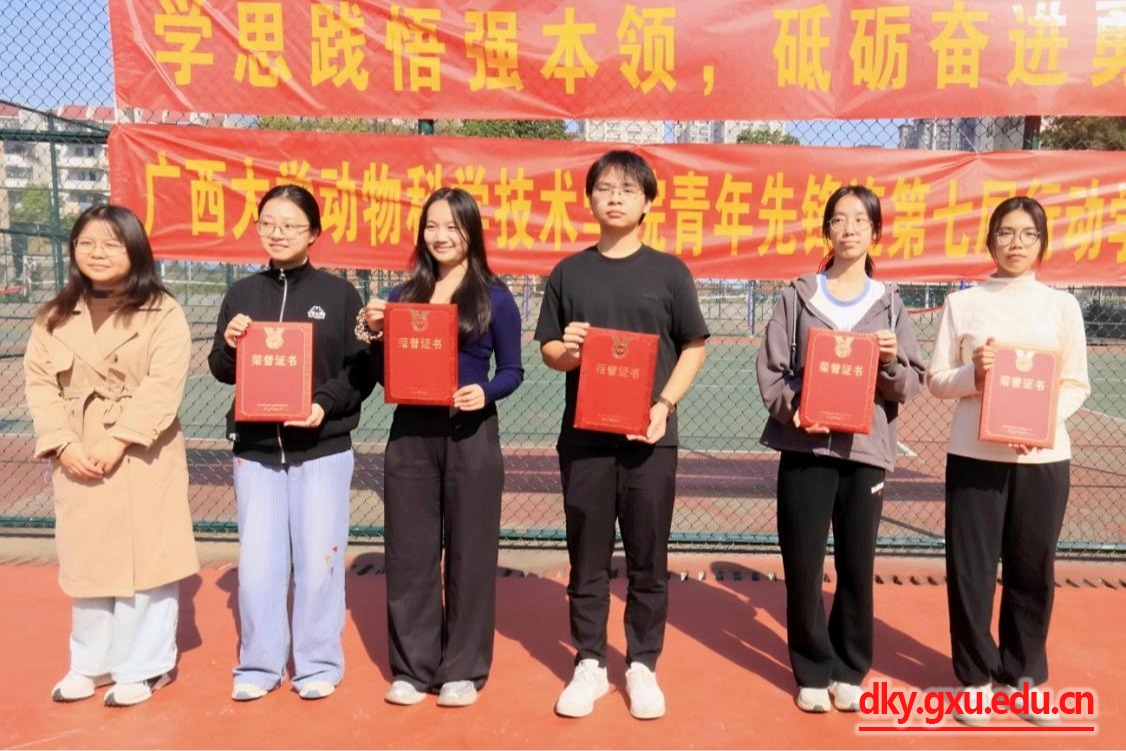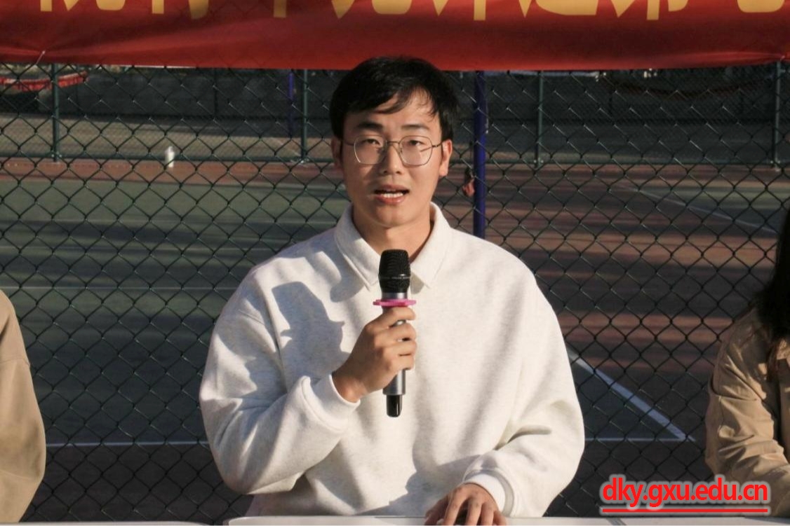 11月29日,廣西大學(xué)動物科學(xué)技術(shù)學(xué)院青年先鋒連第七屆行動學(xué)習(xí)活動在東校園籃球場舉行。動物科學(xué)技術(shù)學(xué)院團委副書記馬朝陽,輔導(dǎo)員覃湘怡,以及來自各學(xué)生黨支部的14支參賽隊伍共同參加此次活動。