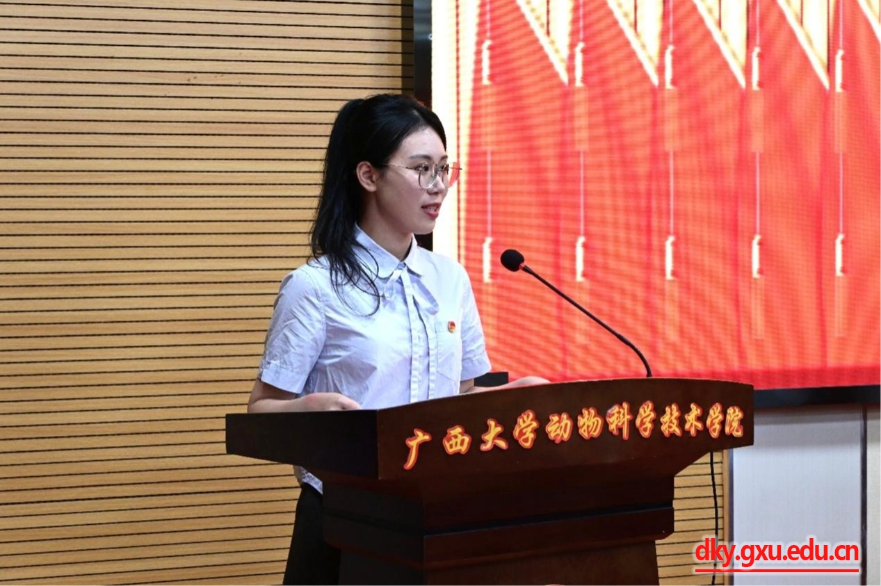 參會(huì)學(xué)生代表聽取并審議了動(dòng)物科學(xué)技術(shù)學(xué)院第十五屆研究生會(huì)執(zhí)行主席朱家正同學(xué)作的題為《錨定強(qiáng)農(nóng)目標(biāo),練就興農(nóng)本領(lǐng),踔厲奮發(fā),勇毅前行,為廣西大學(xué)建設(shè)牢牢扎根八桂大地的中國特色“雙一流”大學(xué)努力奮斗》的工作報(bào)告。報(bào)告總結(jié)了研究生會(huì)一年來在深化思想引領(lǐng)、健全完善制度、營造學(xué)術(shù)氛圍、激發(fā)青春活力、服務(wù)同學(xué)成長等方面開展的主要工作及取得的經(jīng)驗(yàn)成績,明確了今后研究生會(huì)工作的主要目標(biāo)和重點(diǎn)任務(wù),并號(hào)召廣大同學(xué)時(shí)刻保持優(yōu)良作風(fēng),胸懷昂揚(yáng)斗志,在服務(wù)畜牧獸醫(yī)事業(yè)高質(zhì)量發(fā)展的奮斗中綻放出更加絢麗奪目的光彩!