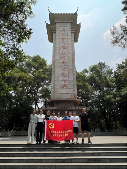 為緬懷和追思革命先烈,賡續(xù)紅色基因,汲取奮進力量,培養(yǎng)民族自信心、自尊心和自豪感,學習和發(fā)揚革命先烈不畏艱險、不怕犧牲的英雄氣概,進一步增強實現中華民族偉大復興的精神力量,做奮發(fā)有為的新時代黨員。2023年4月23日,廣西大學動物科學技術學院研究生第三黨支部前往青秀山開展“傳承紅色基因、緬懷革命先烈、凝聚奮進力量”的主題黨日活動,以傳承革命精神,讓紅色基因代代相傳。