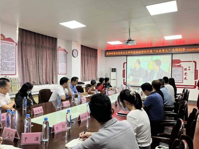 11月4日,廣西大學(xué)馬克思主義學(xué)院黨委書(shū)記周瑞超一行18人到我院開(kāi)展“三全育人”工作交流。我院黨委書(shū)記顧慕嫻、原教工第二黨支部書(shū)記黃偉堅(jiān)教授、教工第二黨支部書(shū)記何家康教授分別向?qū)Ψ浇榻B我院“雙帶頭人”教師黨支部書(shū)記工作室的建設(shè)情況、黨建+育人開(kāi)展情況、黨建+院企合作建設(shè)情況等。隨后,雙方就黨建與業(yè)務(wù)融合發(fā)展、“黨建+”優(yōu)秀案例、提高專題黨課質(zhì)量等進(jìn)行了交流。