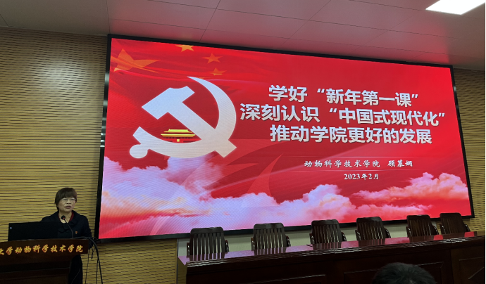 2023年2月16日,院黨委書(shū)記顧慕嫻給全院教職工上題為“學(xué)好“新年第一課”,深刻認(rèn)識(shí)“中國(guó)式現(xiàn)代化”,推動(dòng)學(xué)院更好的發(fā)展”的專(zhuān)題黨課。