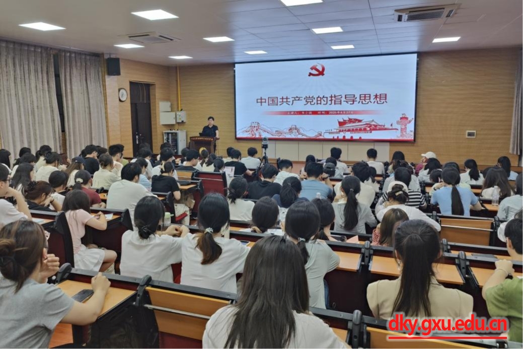 4月27日晚上,廣西大學(xué)黨委黨校動(dòng)物科學(xué)技術(shù)學(xué)院分黨校2025年上半年培訓(xùn)班開(kāi)班儀式在學(xué)院318報(bào)告廳舉行。動(dòng)物科學(xué)技術(shù)學(xué)院黨委書(shū)記韋小強(qiáng),副院長(zhǎng)寧鵬飛、蔣欽楊,團(tuán)委書(shū)記劉誠(chéng),團(tuán)委副書(shū)記馬朝陽(yáng),輔導(dǎo)員鄒佳琪、陸維鴻出席活動(dòng),271名培訓(xùn)班學(xué)員通過(guò)線上線下相結(jié)合的方式參加活動(dòng)。