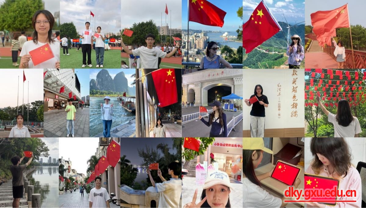 在慶祝中華人民共和國(guó)成立76周年之際,為深化愛(ài)國(guó)主義教育,激發(fā)學(xué)生熱愛(ài)祖國(guó)、珍惜和平的情感和不畏艱險(xiǎn)、勇?lián)姑那閼眩瑥V西大學(xué)動(dòng)物科學(xué)技術(shù)學(xué)院本科生動(dòng)物科學(xué)第一黨支部開展了“我與國(guó)旗合張影”主題黨日活動(dòng)。