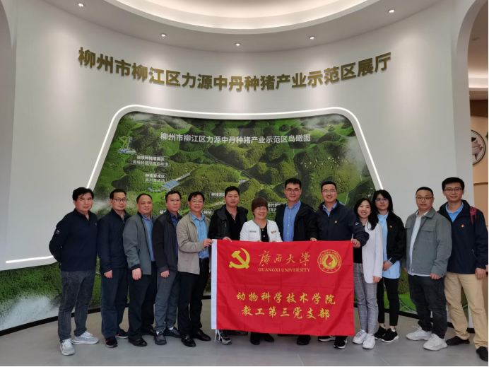 為調(diào)研區(qū)內(nèi)龍頭農(nóng)牧企業(yè)對高校的人才和技術(shù)需求,2023年4月11日,在廣西大學(xué)動物科學(xué)技術(shù)學(xué)院黨委書記顧慕嫻的帶領(lǐng)下,學(xué)院副院長何家康教授、教工第三支部書記王曉曄副教授及教工第三支部全體黨員同志一行走訪柳州市柳江區(qū)力源中丹種豬產(chǎn)業(yè)示范區(qū),與力源種豬事業(yè)部開展“產(chǎn)教融合”主題黨建活動,并就人才培養(yǎng)和技術(shù)合作開展深入交流。