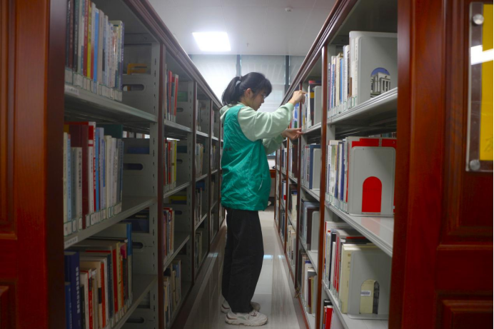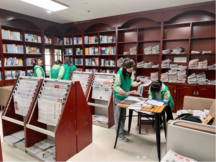 動科222班團支部的同學一大早就來到圖書館北區(qū)5樓協助整理書籍和報刊。大家按照圖書館工作人員的培訓,先把書籍根據大類進行分門別類整理,再根據具體編號一本本歸置到書架上,報刊也按照名稱和發(fā)行時間進行排序整理。數百本書籍、報刊回到了自己的位置。