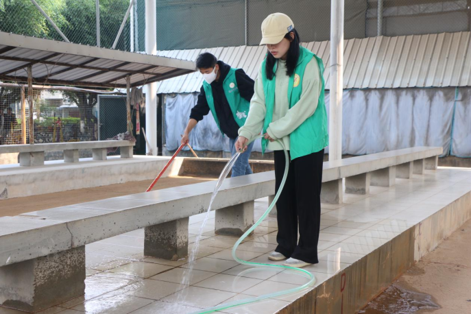 動醫(yī)212班團支部和動醫(yī)221班團支部分別組織團員來到東、西校園離退休教職工活動中心打掃球場,他們拿著抹布、掃帚、拖把、鋤頭、鏟子等工具,分工協作,相互配合,對活動中心內的垃圾、雜草、樹枝等進行清理。經過大家的辛勤勞動,活動中心煥然一新。