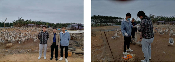 2月13日,教工二支部黨員、廣西肉鴿行業(yè)協(xié)會(huì)秘書長、黨支部副書記韋天超副教授帶領(lǐng)研究生到南寧市江南區(qū)郊區(qū)鵝場(chǎng)指導(dǎo)鵝病防控以及采樣檢測(cè)病原。