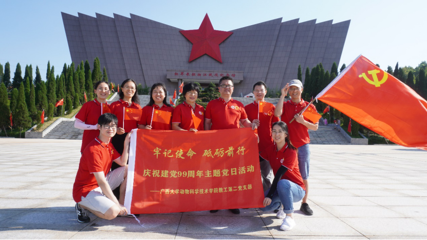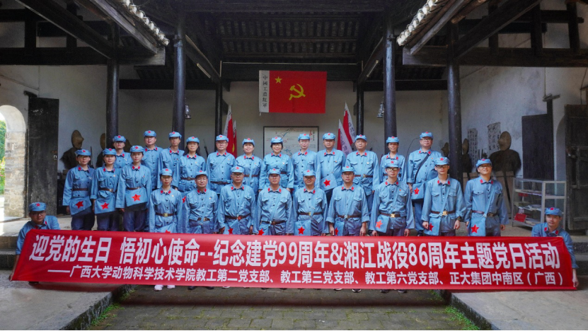2020年7月15日-16日,廣西大學(xué)動物科學(xué)技術(shù)學(xué)院教師第二黨支部和學(xué)院教工三黨支部、第六黨支部等教師黨員與正大集團(tuán)廣西區(qū)各公司黨支部黨員赴桂林全州、興安聯(lián)合開展“迎黨的生日、悟初心使命“主題黨日活動暨校企高峰論壇。廣西大學(xué)動物科學(xué)技術(shù)學(xué)院黨委書記顧慕嫻、正大集團(tuán)廣西區(qū)總裁賴平生等參加本次活動。
