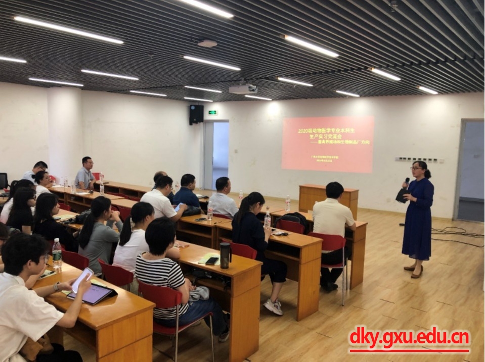 會上,廣西麗誠東生物股份有限公司總經(jīng)理黃慶南用圖片、數(shù)據(jù)等形式介紹了該公司的發(fā)展概況和主要業(yè)務(wù)。廣西農(nóng)墾永新畜牧集團西江有限公司生產(chǎn)部獸醫(yī)王豪博士就企業(yè)概況、企業(yè)優(yōu)勢、福利待遇、實習(xí)須知等內(nèi)容進行敘述。歐陽康老師就生產(chǎn)實習(xí)過程中的紀(jì)律要求、保險購買、成績考核等方面進行了詳細(xì)講解。隨后,同學(xué)們針對實習(xí)事項與企業(yè)和指導(dǎo)老師進行了熱烈的交流。