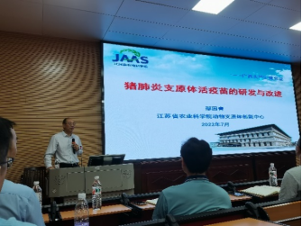 邵國(guó)青研究員首先介紹了豬肺炎支原體活疫苗的發(fā)展以及研究現(xiàn)狀,經(jīng)過(guò)何正禮、金洪效、邵國(guó)青等三代科研人員長(zhǎng)達(dá)30年的實(shí)驗(yàn)室與臨床試驗(yàn),證明168株免疫原性好、安全穩(wěn)定。隨后,介紹本研究團(tuán)隊(duì)采用“無(wú)細(xì)胞培養(yǎng)-本種動(dòng)物回歸交替?zhèn)鞔敝氯跫夹g(shù),攻克了強(qiáng)毒株致弱后仍保持免疫原性的難關(guān)。最終成功研發(fā)豬肺炎支原體活疫苗,顯著優(yōu)于國(guó)外滅活疫苗,整體技術(shù)居國(guó)際領(lǐng)先水平,疫苗轉(zhuǎn)讓給4家國(guó)內(nèi)獸用生物制品企業(yè),產(chǎn)品在全國(guó)應(yīng)用已超過(guò)一億頭份,打破國(guó)外壟斷,對(duì)生豬養(yǎng)殖過(guò)程中豬支原體肺炎的防控發(fā)揮了重要作用,為國(guó)家?guī)?lái)巨大的經(jīng)濟(jì)和社會(huì)效益。