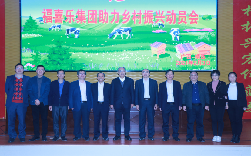 2021年2月3日,廣西大學(xué)動(dòng)物科學(xué)技術(shù)學(xué)院十二位師生在馮家勛副校長的帶領(lǐng)下參加了廣西大學(xué)研究生院福喜樂分院聯(lián)合的企業(yè)福喜樂集團(tuán)在靖西市黨校舉行的助力鄉(xiāng)村振興動(dòng)員會(huì)。廣西農(nóng)業(yè)職業(yè)技術(shù)學(xué)院、廣西水產(chǎn)學(xué)校、廣西百色農(nóng)校等涉農(nóng)院校的校領(lǐng)導(dǎo)及福喜樂公司高管參加了會(huì)議。