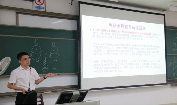 隨后,今年成功考上本校的研究生代表吳韜,與大家分享了自己的考研經(jīng)歷與心得,樹立了學(xué)習(xí)榜樣,幫助同學(xué)們少走彎路。